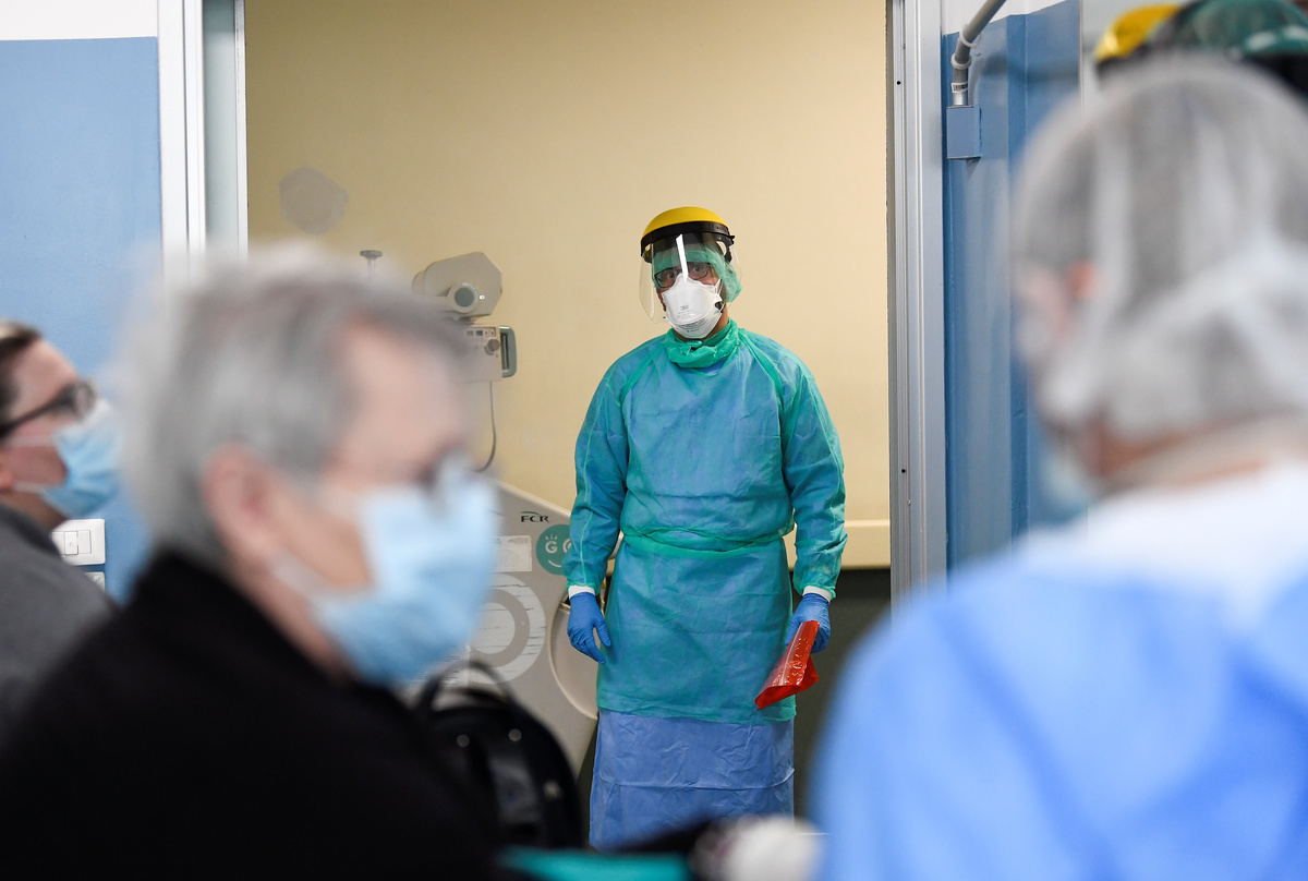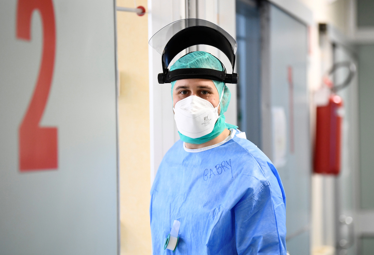 A member of the medical personnel looks on at the Cernusco sul Naviglio hospital for patients suffering the coronavirus disease (COVID-19), in Milan, Italy, April 7, 2020. REUTERS/Flavio Lo ScalzoA member of the medical personnel looks on at the Cernusco sul Naviglio hospital for patients suffering the coronavirus disease (COVID-19), in Milan, Italy, April 7, 2020. REUTERS/Flavio Lo ScalzoA member of the medical personnel looks on at the Cernusco sul Naviglio hospital for patients suffering the coronavirus disease (COVID-19), in Milan, Italy, April 7, 2020. REUTERS/Flavio Lo ScalzoA member of the medical personnel stands under the door frame in a room where a patient suffering from the coronavirus disease (COVID-19) is treated, at the Cernusco sul Naviglio hospital in Milan, Italy, April 7, 2020. REUTERS/Flavio Lo ScalzoA member of the medical personnel looks on at the Cernusco sul Naviglio hospital for patients suffering the coronavirus disease (COVID-19), in Milan, Italy, April 7, 2020. REUTERS/Flavio Lo ScalzoMedical personnel treat a patient suffering from the coronavirus disease (COVID-19), at the Cernusco sul Naviglio hospital in Milan, Italy, April 7, 2020. REUTERS/Flavio Lo ScalzoA patient suffering from the coronavirus disease (COVID-19) is treated at the Cernusco sul Naviglio hospital in Milan, Italy, April 7, 2020. REUTERS/Flavio Lo ScalzoA patient suffering from the coronavirus disease (COVID-19) is treated at the Cernusco sul Naviglio hospital in Milan, Italy, April 7, 2020. REUTERS/Flavio Lo ScalzoA patient suffering from the coronavirus disease (COVID-19) is treated at the Cernusco sul Naviglio hospital in Milan, Italy, April 7, 2020. REUTERS/Flavio Lo ScalzoA patient suffering from the coronavirus disease (COVID-19) is treated at the Cernusco sul Naviglio hospital in Milan, Italy, April 7, 2020. REUTERS/Flavio Lo ScalzoA member of the medical personnel looks on at the Cernusco sul Naviglio hospital for patients suffering the coronavirus disease (COVID-19), in Milan, Italy, April 7, 2020. REUTERS/Flavio Lo Scalzo
