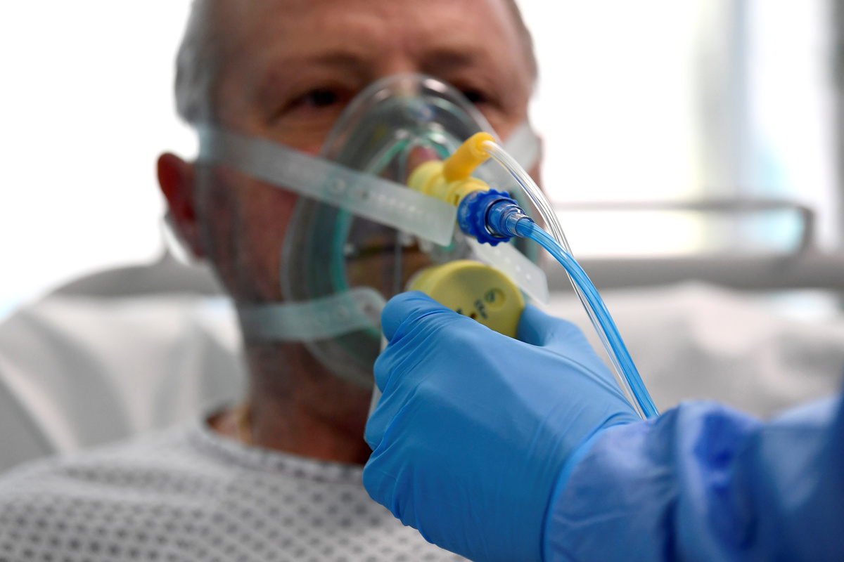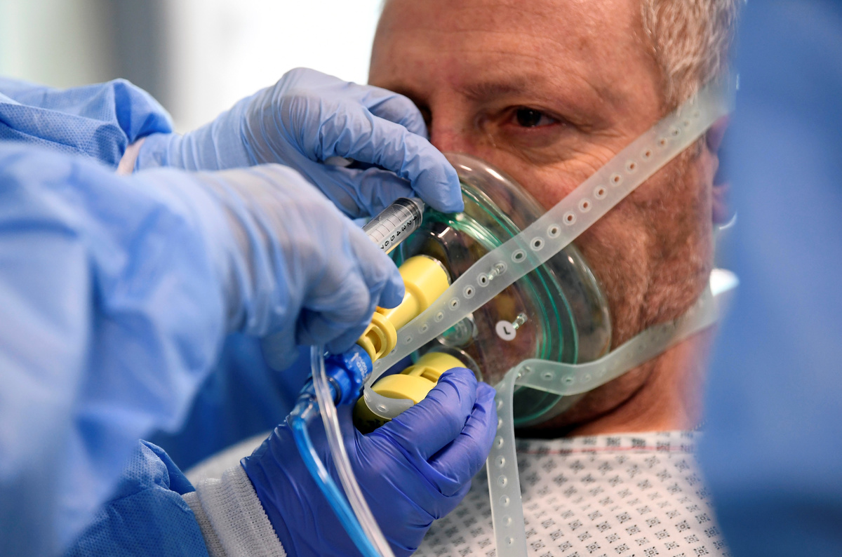On Tuesday morning, doctors in protective gear removed an oxygen mask from the face of an elderly man and held up a tablet.