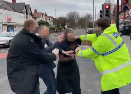 Footage of the incident began circulating online on Sunday afternoon after police were called to a cafe in Burnage, Manchester, due to reports of a breach of Covid rules.