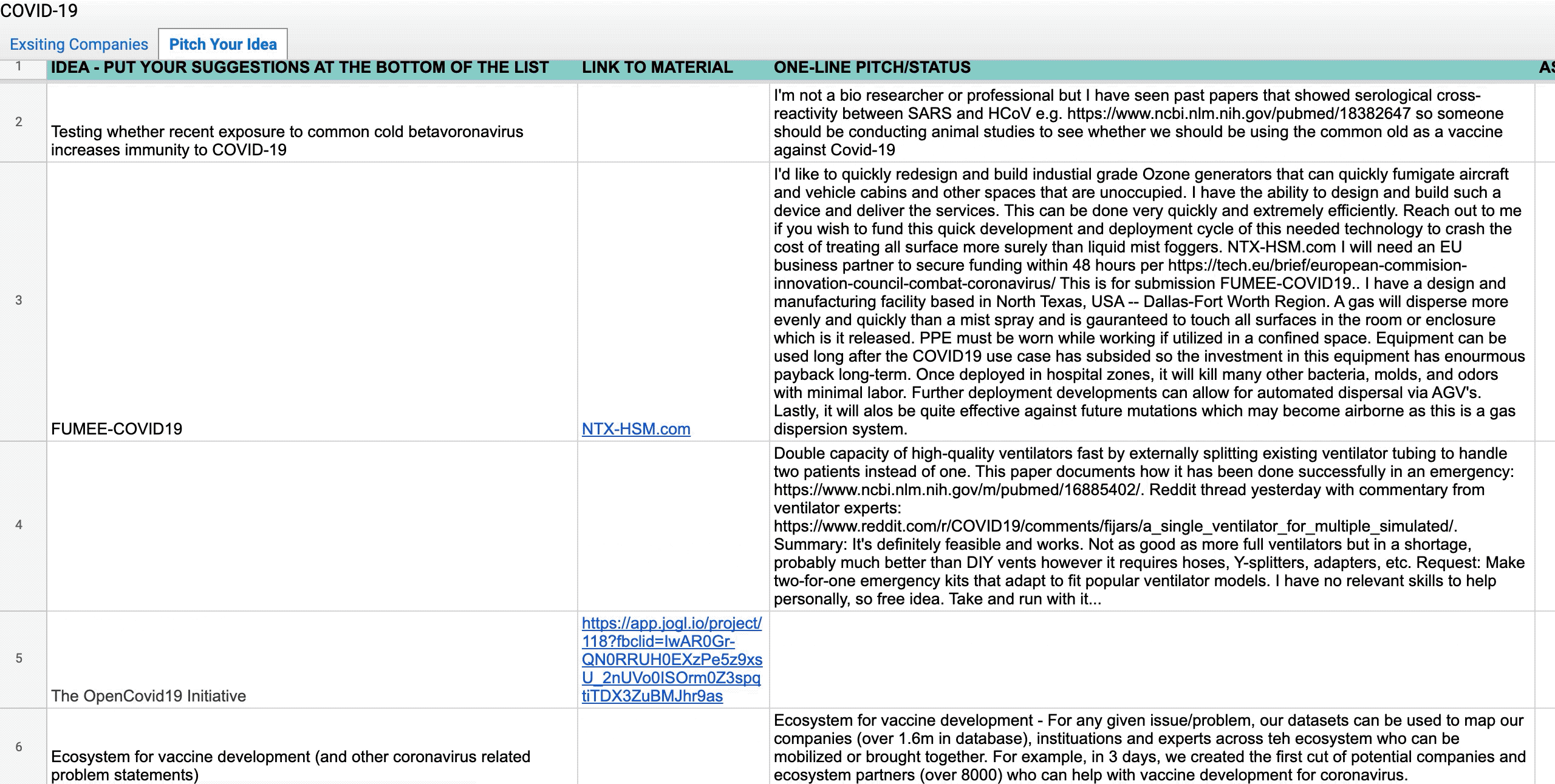 Of the startups that have signed up for the project thus far, a few different approaches to combating the virus stand out.
