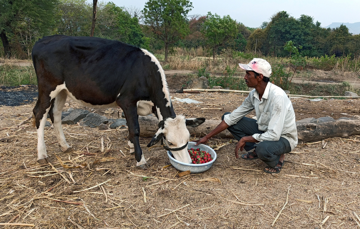 Indian farmer Anil Salunkhe is feeding his strawberries to cows because the local tourists that usually eat them are gone, as are the fruit vendors that once worked the streets of the nearby metropolis of Mumbai.