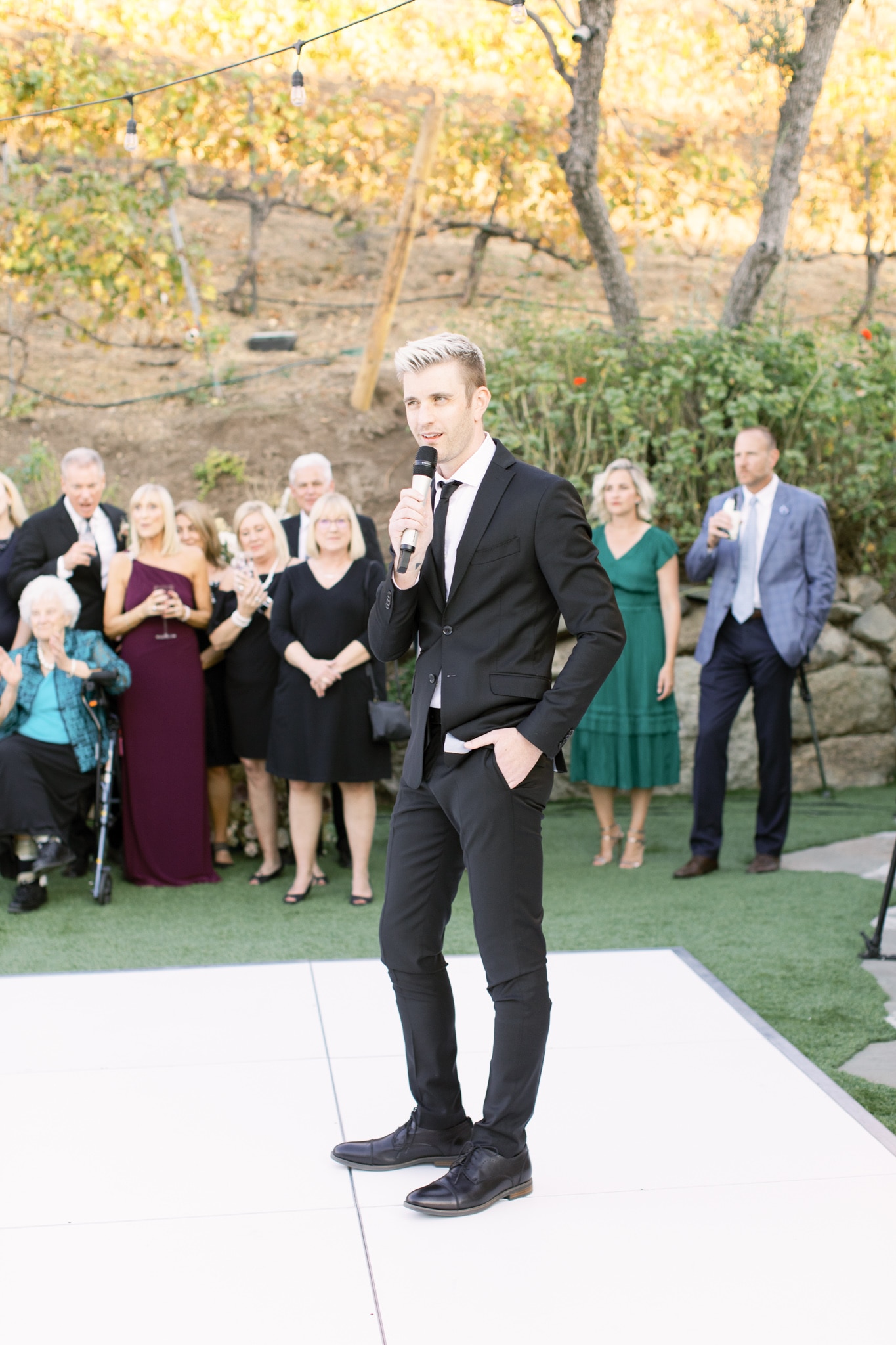 The entire event was outdoors, every guest eligible for a vaccine had received their shots and their wedding favours reflected the COVID reality — designer masks and monogrammed hand sanitiser.