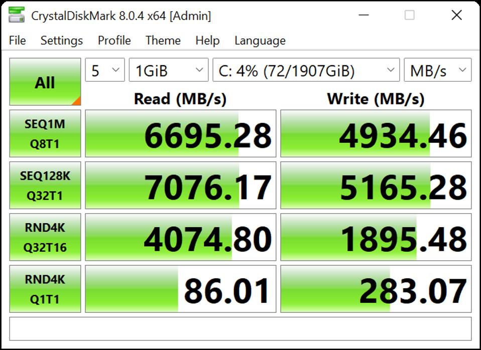 Storage: 2TB Samsung PCIe Gen 4 NVMe