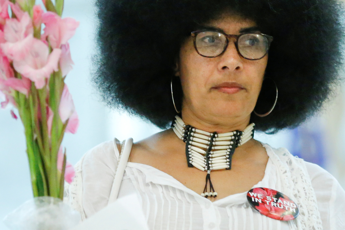 Andrea Constand walks from the courtroom after testifying at Bill Cosby's sexual assault trial at the Montgomery County Courthouse in Norristown, Pennsylvania. REUTERS/Matt Rourke/Pool