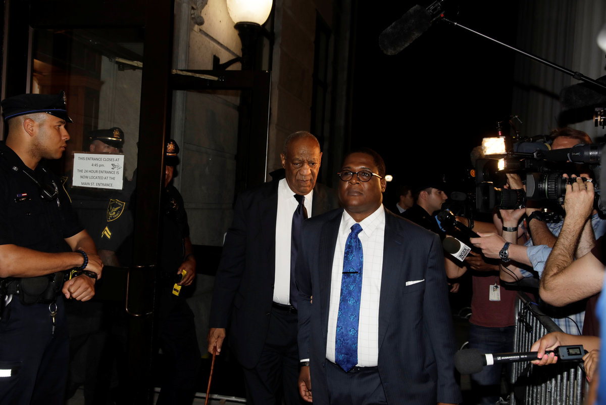 Actor and comedian Bill Cosby (R) departs after deliberations of his sexual assault trial at the Montgomery County Courthouse in Norristown, Pennsylvania, U.S., June 13, 2017. REUTERS/Lucas Jackson TPX IMAGES OF THE DAYBill Cosby walks to the courtroom with publicist Andrew Wyatt at the Montgomery County Courthouse as the jury deliberates in his sexual assault trial in Norristown, Pennsylvania, U.S. June 13, 2017. REUTERS/Matt Rourke/PoolLawyer Gloria Allred is interviewed as deliberations continue on the seventh day of Cosby's sexual assault trial at the Montgomery County Courthouse in Norristown, Pennsylvania, U.S., June 13, 2017. REUTERS/Lucas JacksonPublicist for actor and comedian Bill Cosby, Andrew Wyatt, reads a statement as deliberations continue on the seventh day of Cosby's sexual assault trial at the Montgomery County Courthouse in Norristown, Pennsylvania, U.S., June 13, 2017. REUTERS/Brendan McDermidActor and comedian Bill Cosby (C) arrives for deliberations on the seventh day of Cosby's sexual assault trial at the Montgomery County Courthouse in Norristown, Pennsylvania, U.S., June 13, 2017. REUTERS/Lucas JacksonActor and comedian Bill Cosby (R) laughs with publicist Andrew Wyatt as he arrives for deliberations on the seventh day of Cosby's sexual assault trial at the Montgomery County Courthouse in Norristown, Pennsylvania, U.S., June 13, 2017. REUTERS/Lucas JacksonActor and comedian Bill Cosby (R) walks with publicist Andrew Wyatt as he arrives for deliberations on the seventh day of Cosby's sexual assault trial at the Montgomery County Courthouse in Norristown, Pennsylvania, U.S., June 13, 2017. REUTERS/Lucas JacksonActor and comedian Bill Cosby (C) arrives for deliberations on the seventh day of Cosby's sexual assault trial at the Montgomery County Courthouse in Norristown, Pennsylvania, U.S., June 13, 2017. REUTERS/Lucas Jackson Actor and comedian Bill Cosby arrives as the jury deliberates during his sexual assault trial at the Montgomery County Courthouse in Norristown, Pennsylvania, U.S. June 13, 2017. REUTERS/Brendan McdermidBill Cosby returns to the courtroom after the lunch break during his trial for sexual assault at the Montgomery County Courthouse in Norristown, Pennsylvania. REUTERS/David Maialetti/PoolBill Cosby (C) enters the Montgomery County Courthouse with publicist Andrew Wyatt during in his sexual assault trial in Norristown, Pennsylvania, U.S. June 13, 2017. REUTERS/David Maialetti/Pool Actor and comedian Bill Cosby arrives as the jury deliberates during his sexual assault trial at the Montgomery County Courthouse in Norristown, Pennsylvania, U.S. June 13, 2017. REUTERS/Brendan McDermid