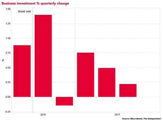 Business investment was also subdued in 2017. The Bank of England in November said that it expects the level of business investment to be around 25 per cent lower by 2019 relative to its pre-referendum forecasts, damaging our future productivity growth.