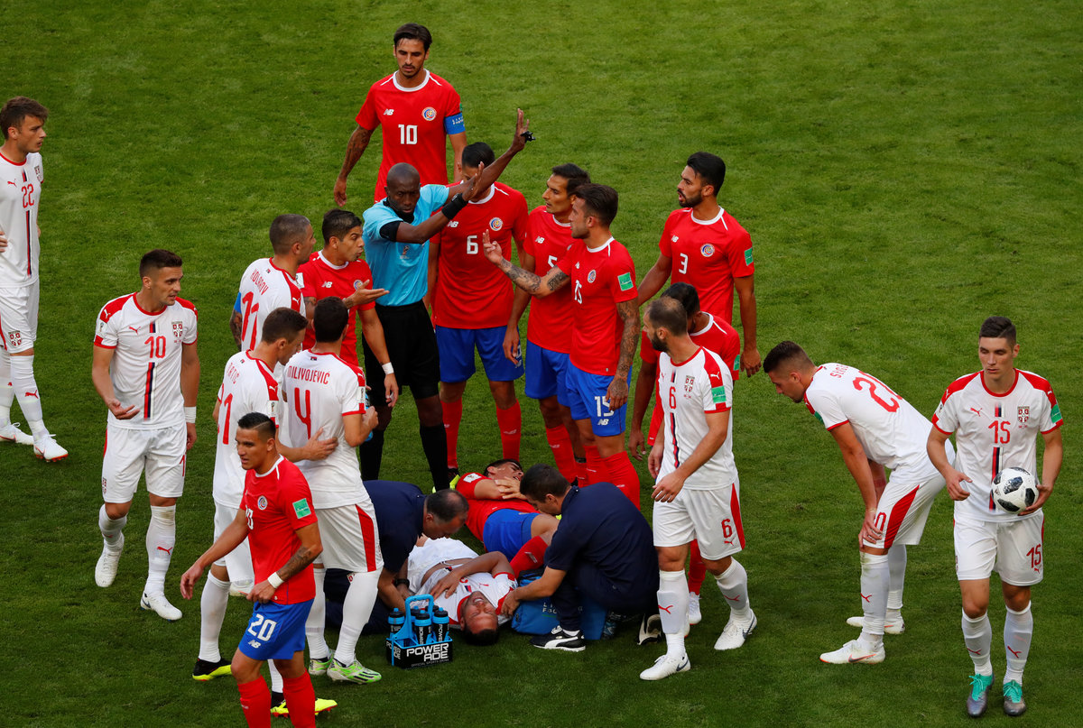 Soccer Football - World Cup - Group E - Costa Rica vs Serbia - Samara Arena, Samara, Russia - June 17, 2018 Costa Rica's Keylor Navas in action as he punches clear REUTERS/Michael DalderSoccer Football - World Cup - Group E - Costa Rica vs Serbia - Samara Arena, Samara, Russia - June 17, 2018 Costa Rica's Marco Urena in action with Serbia's Nikola Milenkovic REUTERS/Dylan MartinezSoccer Football - World Cup - Group E - Costa Rica vs Serbia - Samara Arena, Samara, Russia - June 17, 2018 Costa Rica's Francisco Calvo in action with Serbia's Sergej Milinkovic-Savic REUTERS/Michael DalderSoccer Football - World Cup - Group E - Costa Rica vs Serbia - Samara Arena, Samara, Russia - June 17, 2018 Serbia's Aleksandar Kolarov in action with Costa Rica's Cristian Gamboa REUTERS/Dylan MartinezSoccer Football - World Cup - Group E - Costa Rica vs Serbia - Samara Arena, Samara, Russia - June 17, 2018 Serbia's Nikola Milenkovic in action with Costa Rica's Marco Urena REUTERS/Dylan MartinezSoccer Football - World Cup - Group E - Costa Rica vs Serbia - Samara Arena, Samara, Russia - June 17, 2018 Serbia's Sergej Milinkovic-Savic attempts an overhead kick REUTERS/Dylan MartinezSoccer Football - World Cup - Group E - Costa Rica vs Serbia - Samara Arena, Samara, Russia - June 17, 2018 Serbia's Sergej Milinkovic-Savic misses a chance to score REUTERS/David GraySoccer Football - World Cup - Group E - Costa Rica vs Serbia - Samara Arena, Samara, Russia - June 17, 2018 A Serbia fan acknowledges the crowd after catching the match ball REUTERS/Dylan MartinezSoccer Football - World Cup - Group E - Costa Rica vs Serbia - Samara Arena, Samara, Russia - June 17, 2018 Serbia's Sergej Milinkovic-Savic has a shot at goal before being flagged for offside REUTERS/Pilar OlivaresSoccer Football - World Cup - Group E - Costa Rica vs Serbia - Samara Arena, Samara, Russia - June 17, 2018 PLayers and medical staff gather around Serbia's Dusko Tosic and Costa Rica's Johnny Acosta REUTERS/David GraySoccer Football - World Cup - Group E - Costa Rica vs Serbia - Samara Arena, Samara, Russia - June 17, 2018 Serbia coach Mladen Krstajic gives the ball to Branislav Ivanovic REUTERS/David Gray