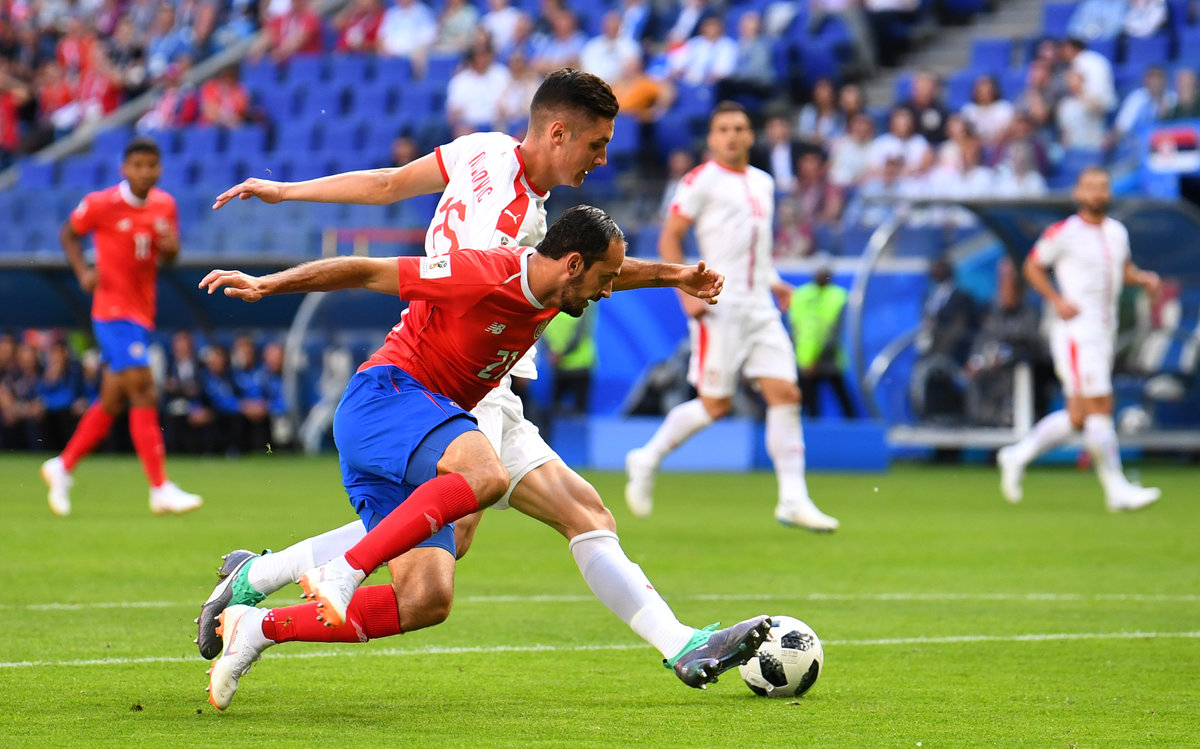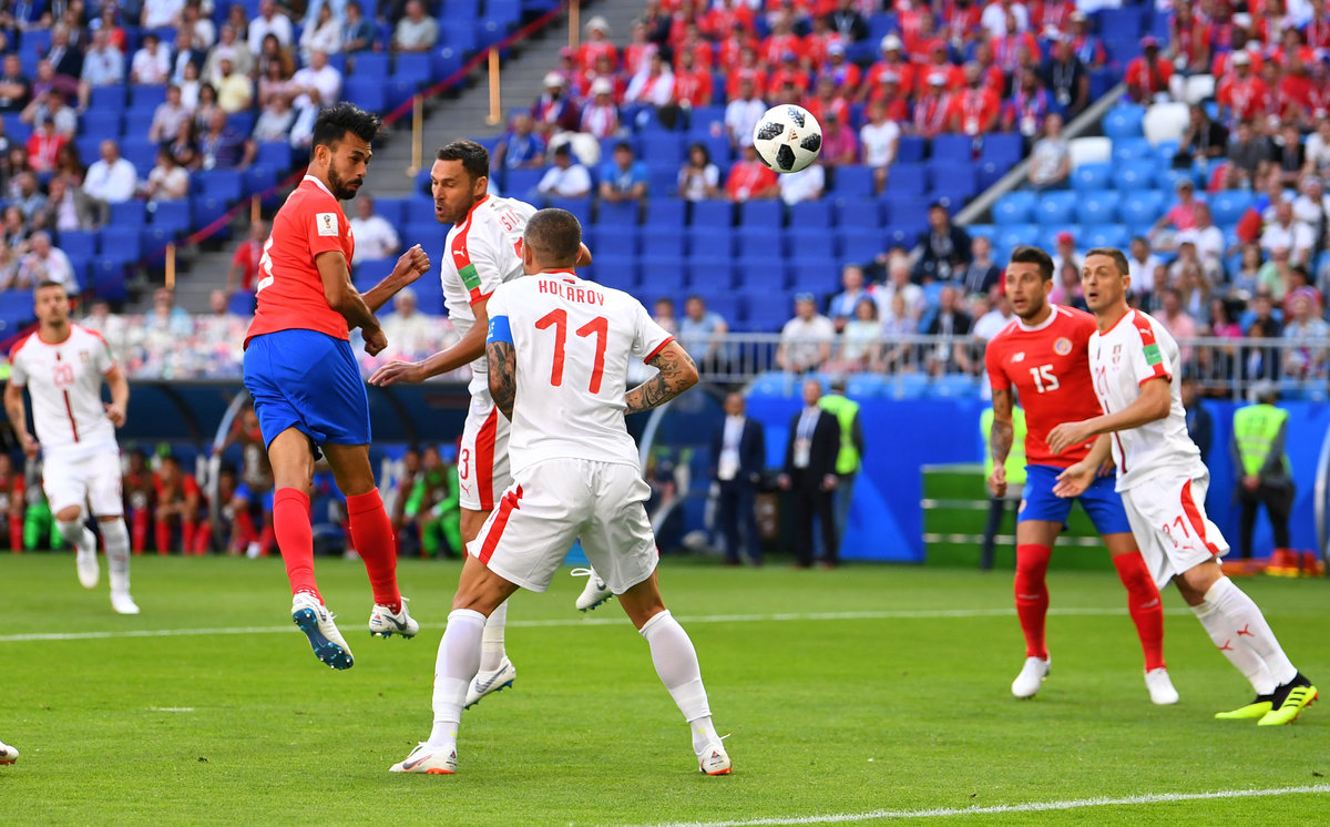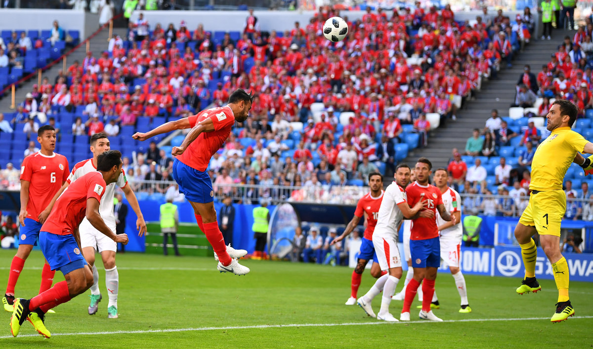 The match began in furious fashion with Serbia's Aleksandar Mitrovic having a header scooped off the line and Costa Rica's Giancarlo Gonzalez failed to convert two headed chances.
