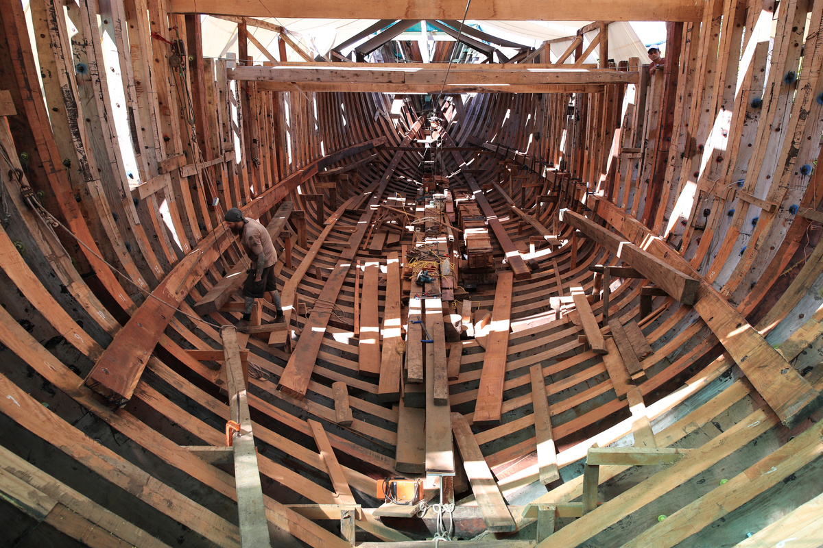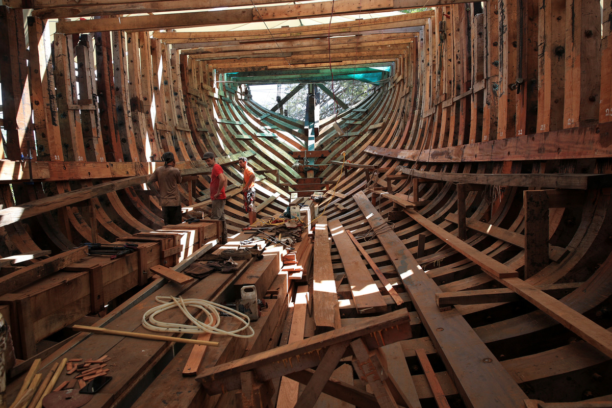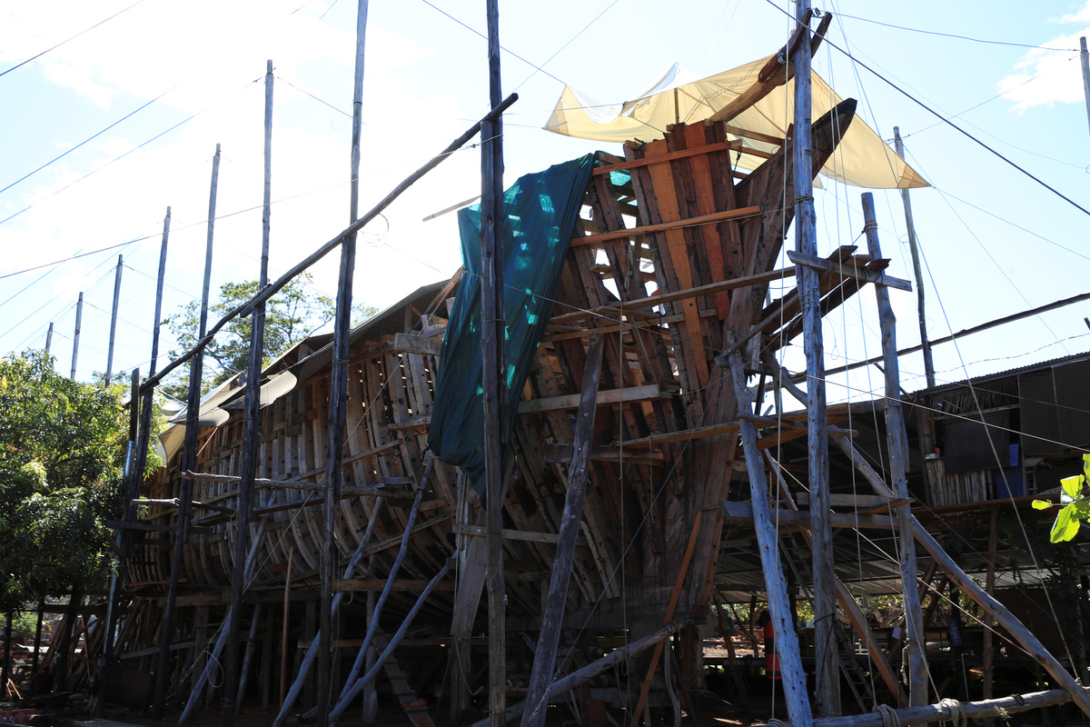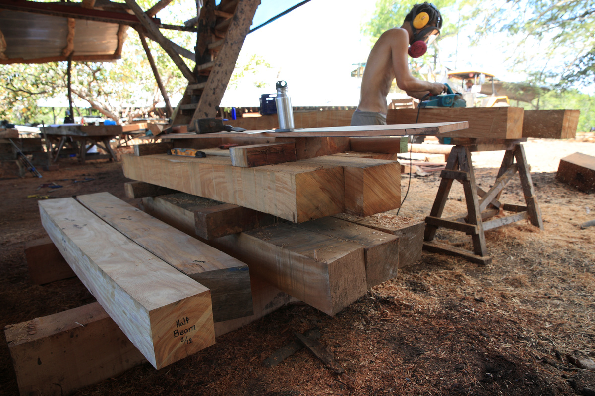 Amid the incessant sound of saws, sanders and mallets, the 45-meter-long (148-foot-long) Ceiba is being built using wood from secondary forests, cultivated or from fallen trees nearby.