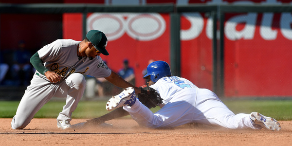 While Cotton was spinning his gem the A's weren't exactly lighting up Kansas City starter Ian Kennedy. The right-hander's lone bit of slippage in his six innings of work came in the fourth inning when Ryon Healy's sinking liner to right couldn't be handled by a diving Paolo Orlando and Davis followed that up with his fourth homer.