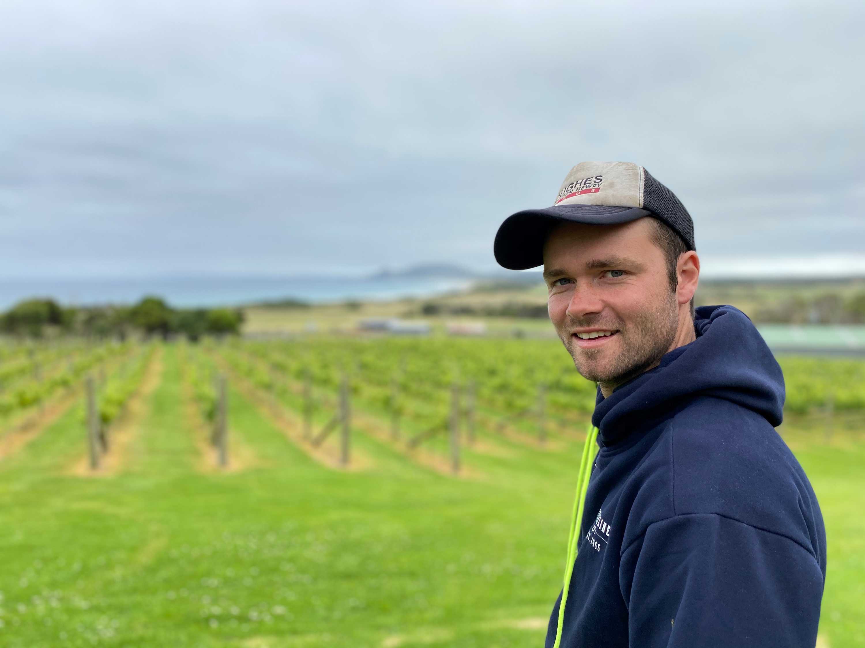 About 200km west of the Nichols family in the tiny community of Marrawah, young farmer Stafford Heres planted his own small vineyard of sparkling grapes in 2015.