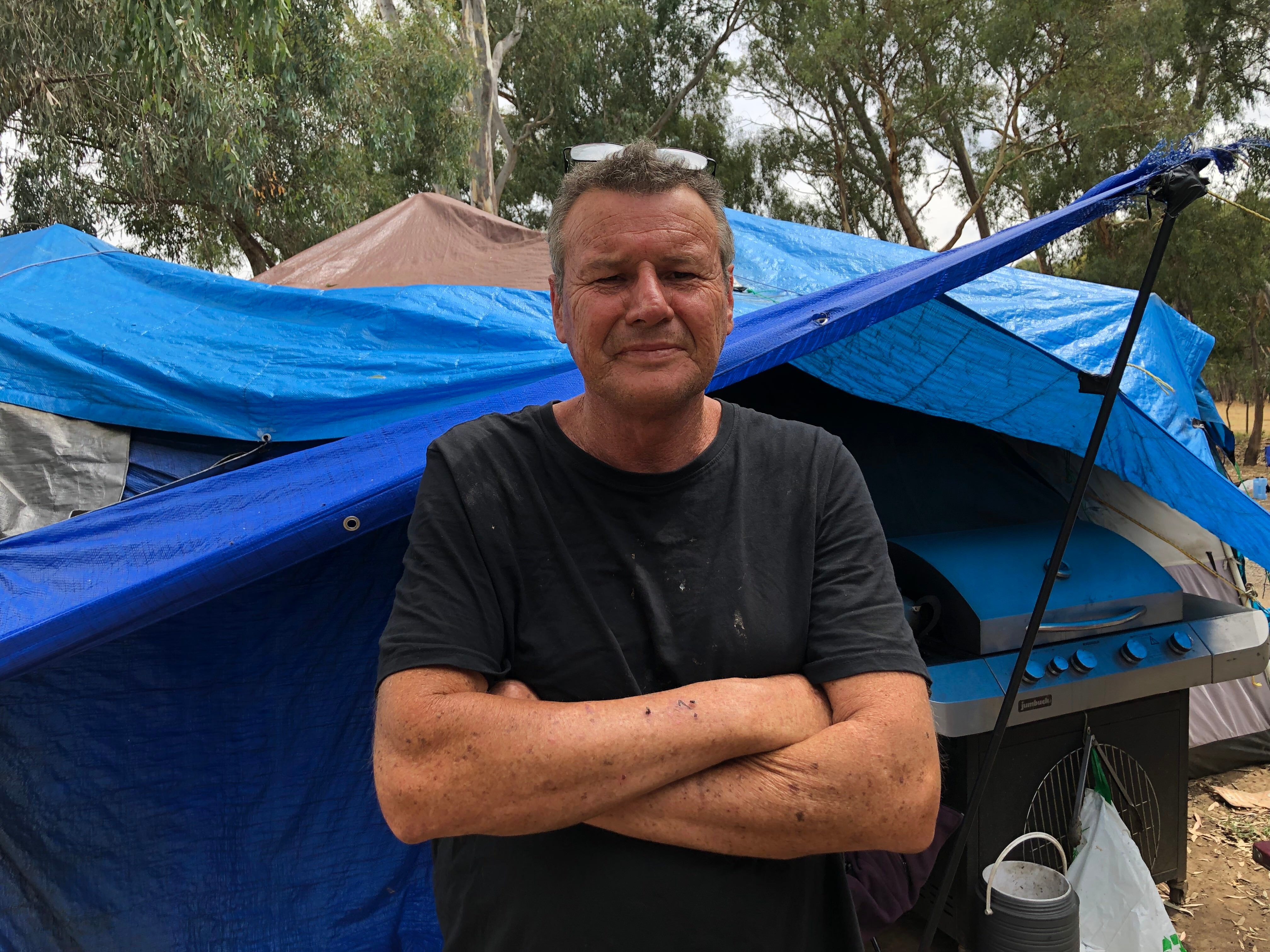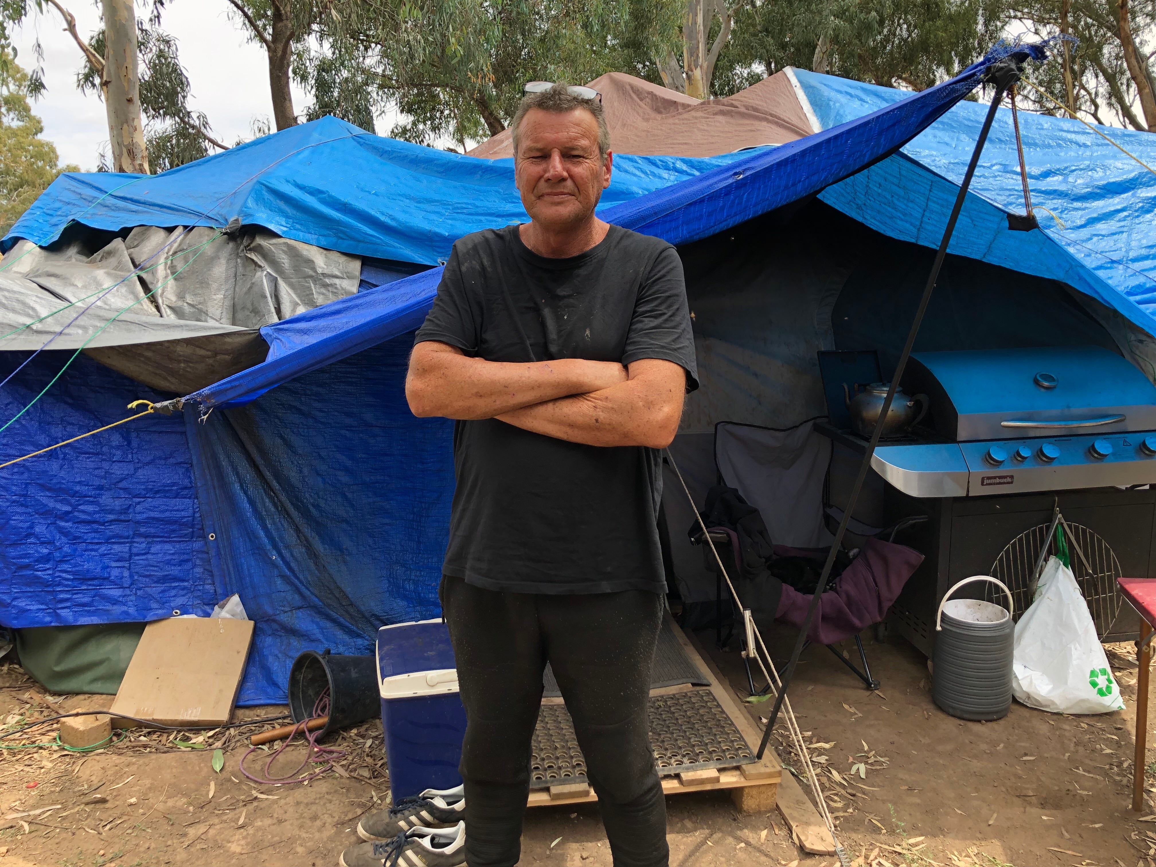 Tim Ferrari is one of a number of campers that stayed put when the City of Greater Bendigo unsuccessfully attempted to evict residents in September last year.
