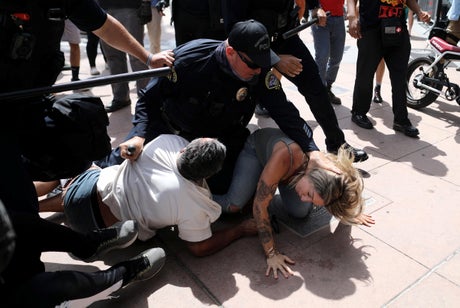 At least 12 people from the counter-demonstrations were taken into custody for various reasons as the crowd turned violent, reported Abc7.
