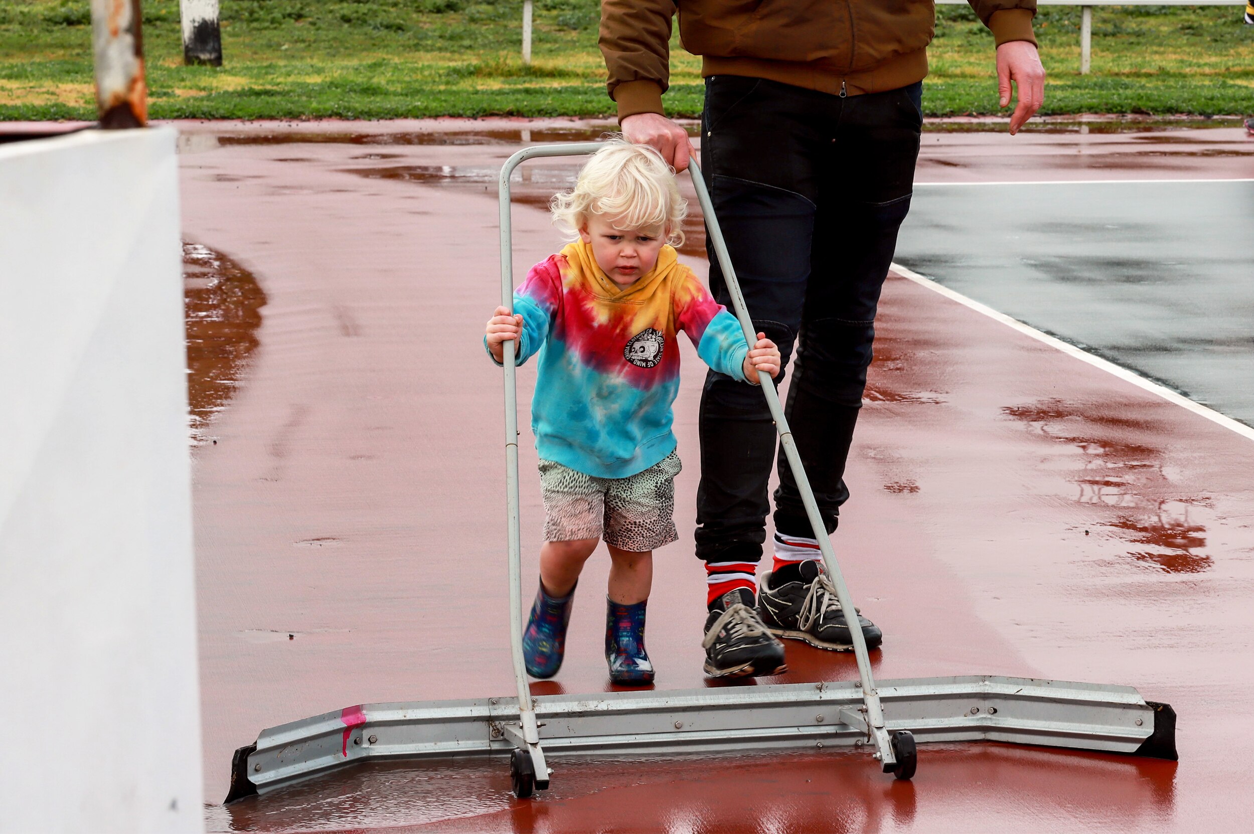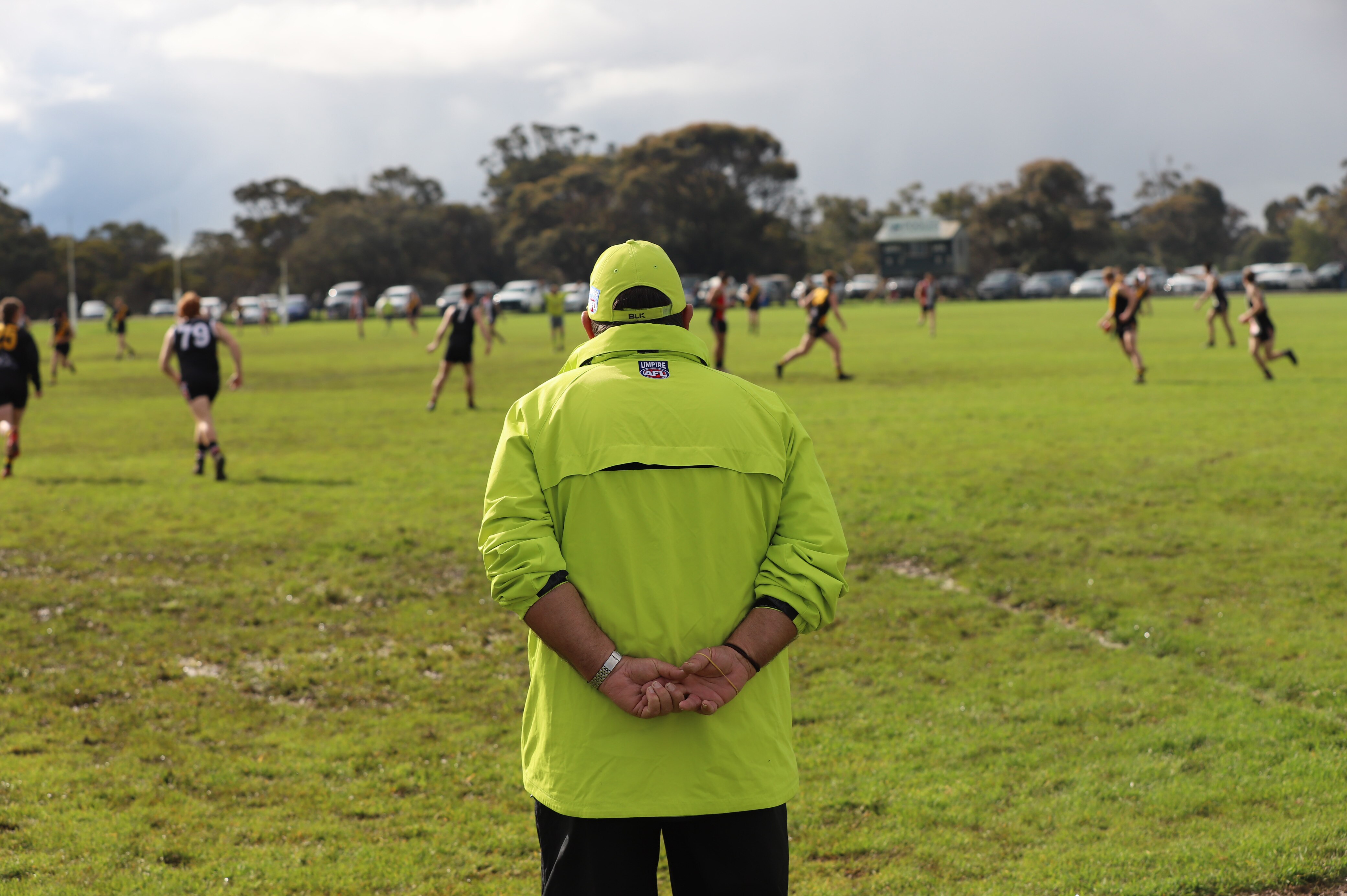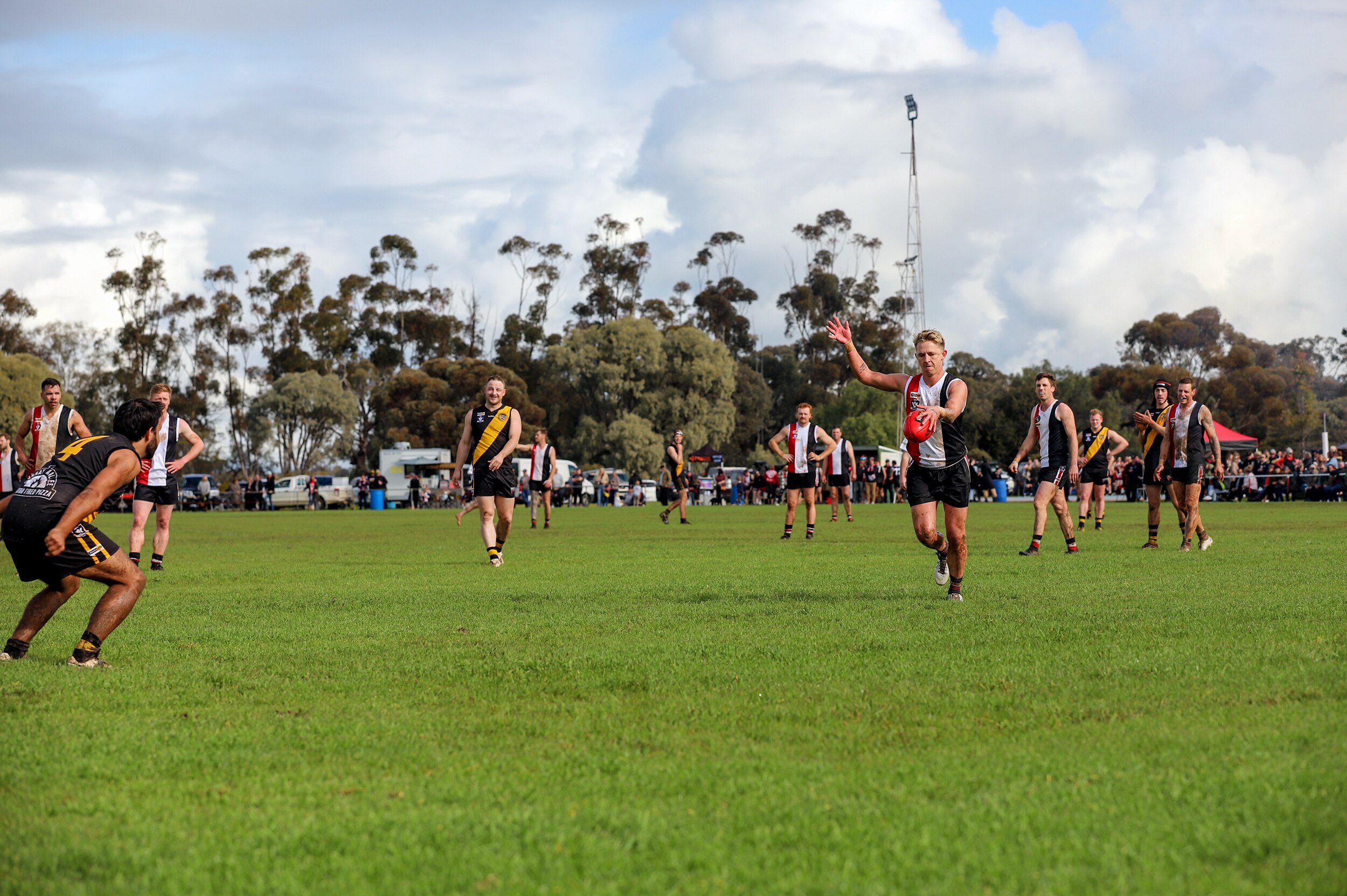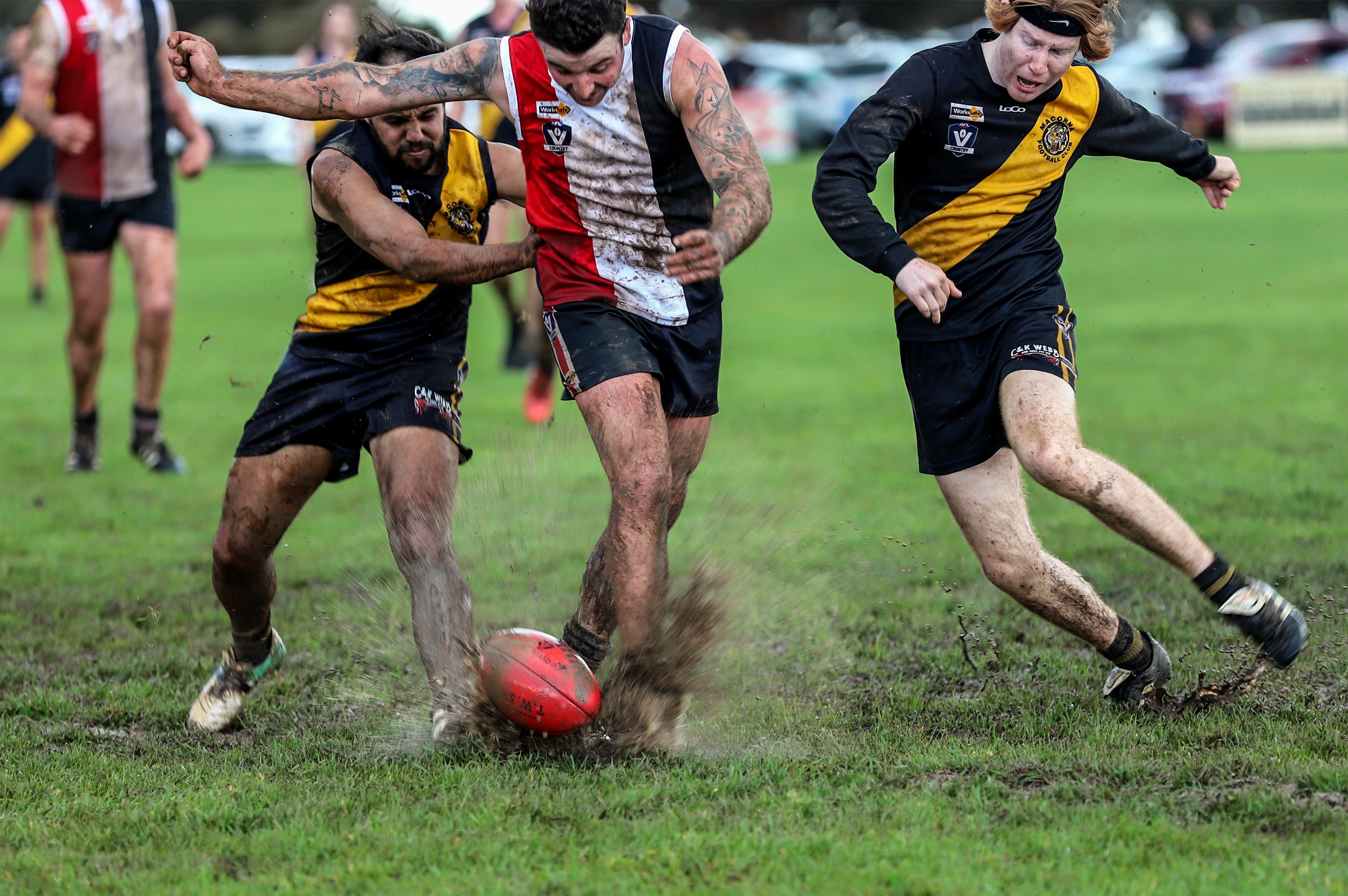 By the time the seniors footy team finally took to the field, the ground was saturated from lashings of afternoon rain.