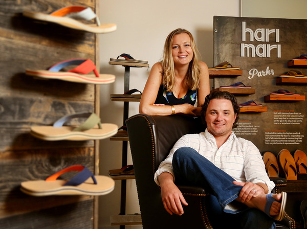 DALLAS _ Think beyond the ordinary flip-flop. That's been the mission of Lila and Jeremy Stewart, a husband-and-wife team who co-founded Hari Mari. The Dallas-based flip-flop company has used new materials and designs to turn the popular beach and poolside sandal into a more comfortable and higher-end footwear option. And they've tried do some good, too. They collect and recycle old flip-flops of any brand and donate 1 percent of every purchase to Flops Fighting Cancer, which goes to Cook Children's Medical Center in Fort Worth.