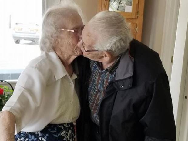 After 69 years of marriage, the couple bid a tearful goodbye and gave each other a kiss before Mr Goodine was driven to the nursing home 45 minutes away. Ms Goodine stood by a window and watched him leave.