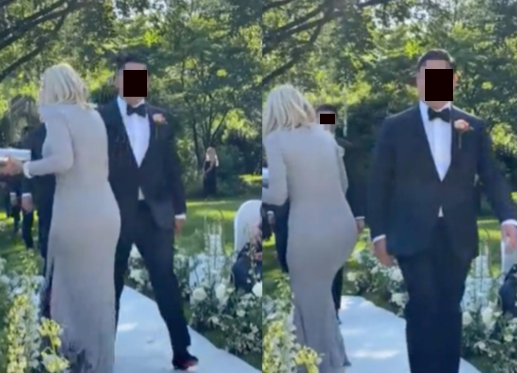 The drama of it all was captured in a brief but telling clip where the girlfriend proceeded to walk in front of the groom during his big moment walking down the aisle and just moments before the bride’s grand entrance too.