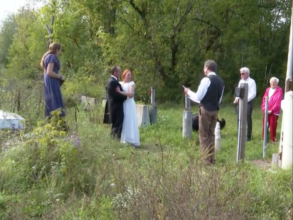 A couple exchanged wedding vows on the US-Canadian border so that the bride’s family could be present for the nuptials.