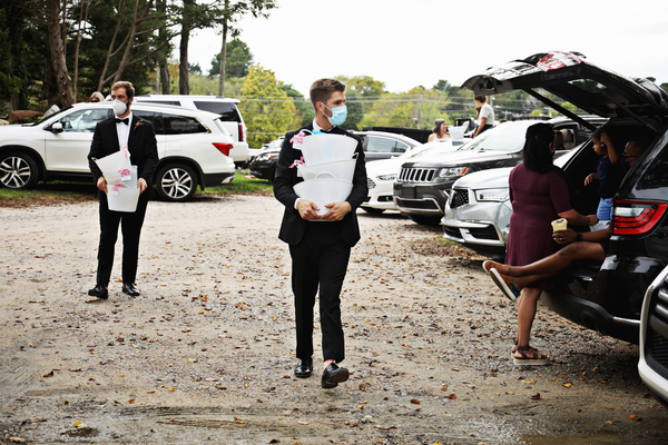 As they visited potential venues for their scaled-down ceremony, it occurred to her she might be able to include a drive-by segment for people who couldn't fit into a socially-distanced service. She was inspired by the way teachers had been doing motor parades through the neighborhoods where their students lived after in-person classes first got canceled.
