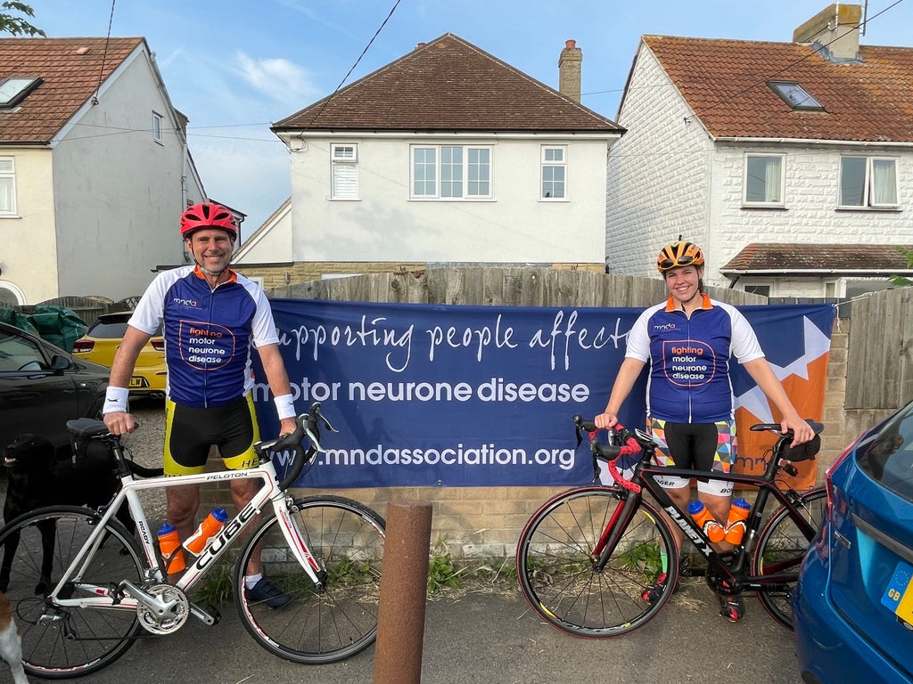 Charlotte Nichols, 21, and Stuart Bates, 51, who have already received more than 3,000 donations, set out to raise £10,000 in memory of Mr Bates’ brother, Spencer Bates, who died from motor neurone disease (MND) in 2011 at the age of 49.