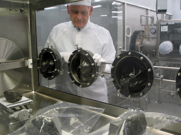 During that time, he was given two Lucite paperweights _ one containing a fragment of lunar material, the other a piece of the Apollo 11 heat shield _ as gifts.