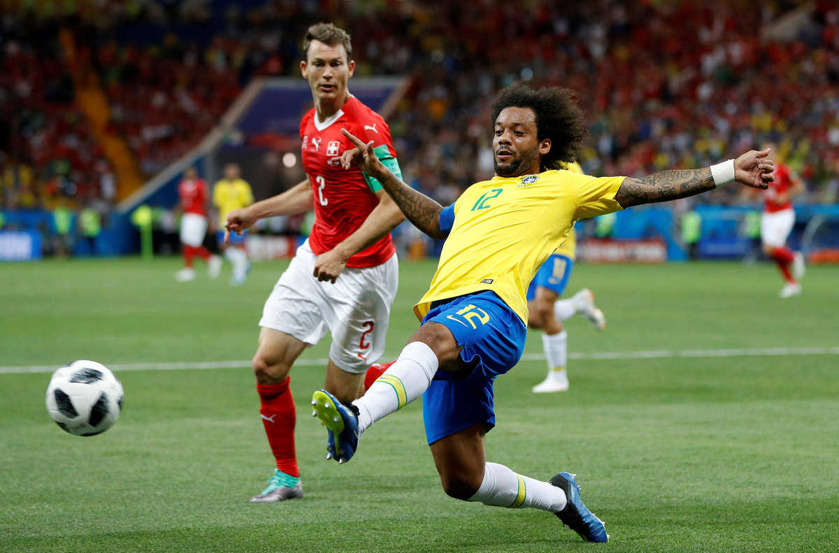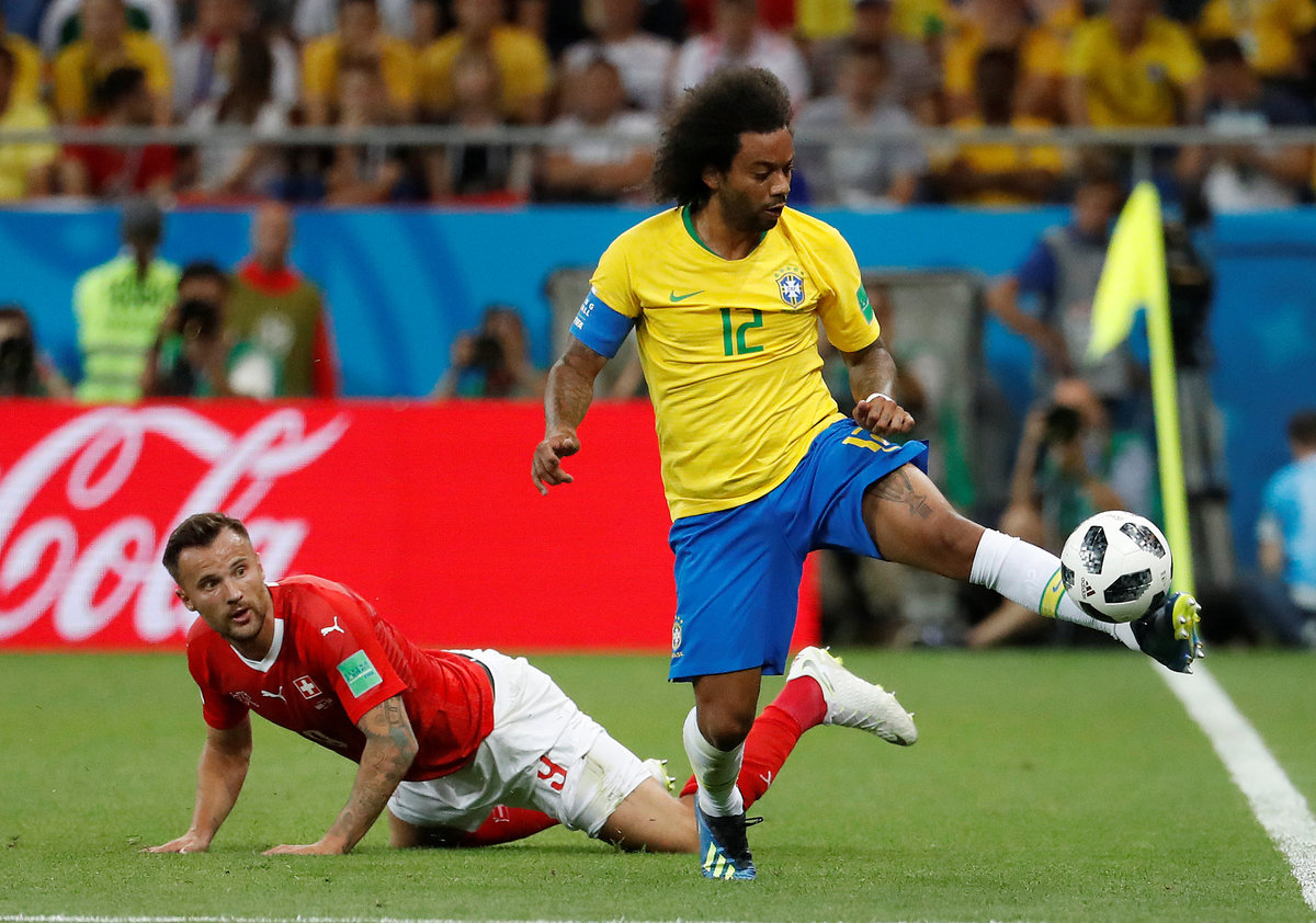 Soccer Football - World Cup - Group E - Brazil vs Switzerland - Rostov Arena, Rostov-on-Don, Russia - June 17, 2018 Brazil's Marcelo in action as Switzerland's Haris Seferovic looks on REUTERS/Damir Sagolj