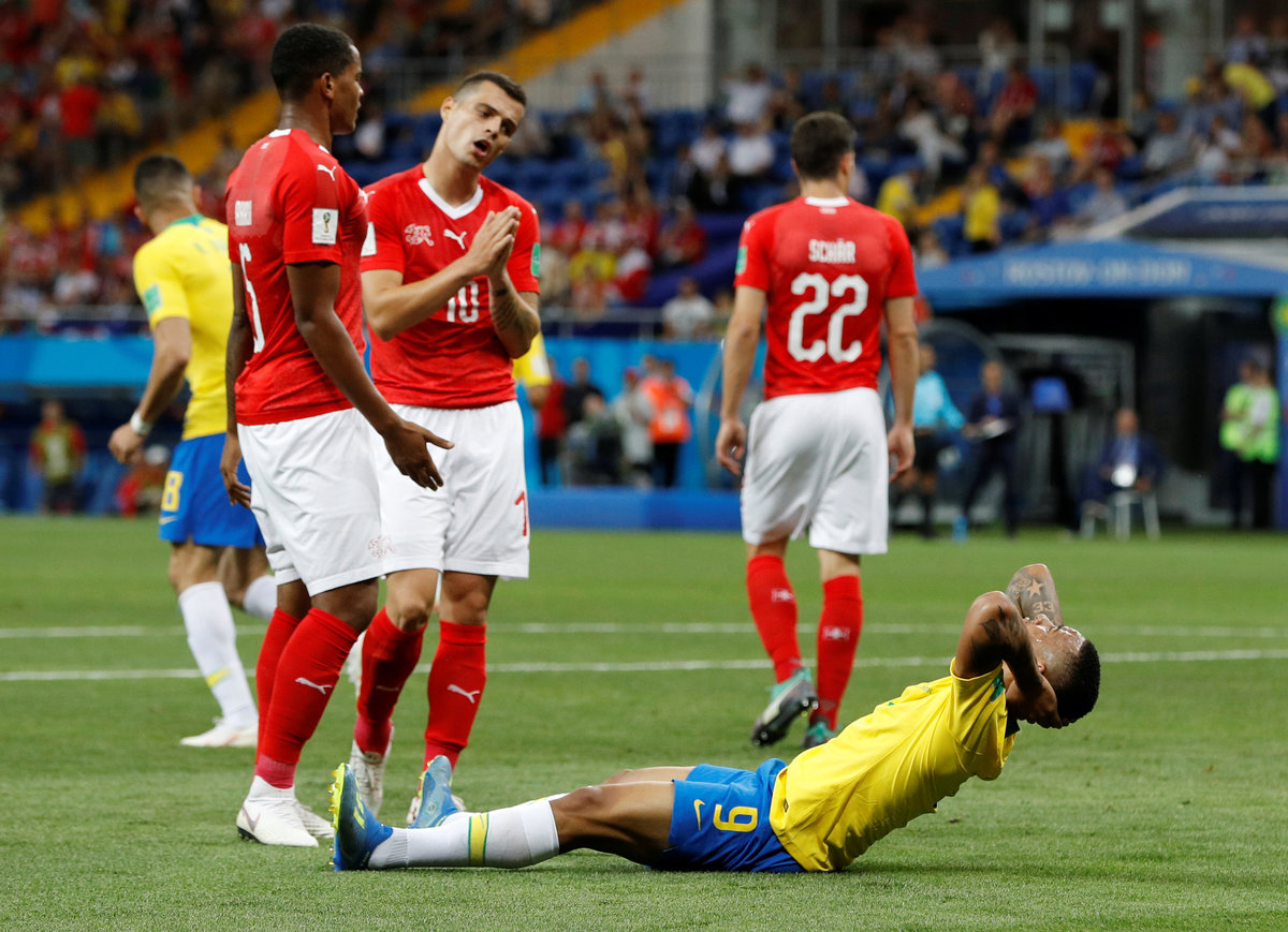 Soccer Football - World Cup - Group E - Brazil vs Switzerland - Rostov Arena, Rostov-on-Don, Russia - June 17, 2018 Brazil's Roberto Firmino shoots over the crossbar as Switzerland's Fabian Schar pressures REUTERS/Darren StaplesSoccer Football - World Cup - Group E - Brazil vs Switzerland - Rostov Arena, Rostov-on-Don, Russia - June 17, 2018 Brazil's Neymar with Switzerland's Granit Xhaka during the match REUTERS/Damir SagoljSoccer Football - World Cup - Group E - Brazil vs Switzerland - Rostov Arena, Rostov-on-Don, Russia - June 17, 2018 Switzerland's Steven Zuber scores their first goal REUTERS/Jason CairnduffSoccer Football - World Cup - Group E - Brazil vs Switzerland - Rostov Arena, Rostov-on-Don, Russia - June 17, 2018 Switzerland's Steven Zuber scores their first goal REUTERS/Marko Djurica TPX IMAGES OF THE DAYSoccer Football - World Cup - Group E - Brazil vs Switzerland - Rostov Arena, Rostov-on-Don, Russia - June 17, 2018 Switzerland's Steven Zuber celebrates after scoring their first goal REUTERS/Marko DjuricaSoccer Football - World Cup - Group E - Brazil vs Switzerland - Rostov Arena, Rostov-on-Don, Russia - June 17, 2018 Brazil's Philippe Coutinho celebrates scoring their first goal REUTERS/Marko DjuricaSoccer Football - World Cup - Group E - Brazil vs Switzerland - Rostov Arena, Rostov-on-Don, Russia - June 17, 2018 Brazil's Philippe Coutinho scores their first goal REUTERS/Jason CairnduffSoccer Football - World Cup - Group E - Brazil vs Switzerland - Rostov Arena, Rostov-on-Don, Russia - June 17, 2018 Brazil's Philippe Coutinho celebrates scoring their first goal REUTERS/Marko DjuricaSoccer Football - World Cup - Group E - Brazil vs Switzerland - Rostov Arena, Rostov-on-Don, Russia - June 17, 2018 Brazil's Neymar in action with Switzerland's Valon Behrami REUTERS/Marko DjuricaSoccer Football - World Cup - Group E - Brazil vs Switzerland - Rostov Arena, Rostov-on-Don, Russia - June 17, 2018 Brazil's Marcelo in action with Switzerland's Stephan Lichtsteiner REUTERS/Darren StaplesSoccer Football - World Cup - Group E - Brazil vs Switzerland - Rostov Arena, Rostov-on-Don, Russia - June 17, 2018 Switzerland's Ricardo Rodriguez in action with Brazil's Willian REUTERS/Jason CairnduffSoccer Football - World Cup - Group E - Brazil vs Switzerland - Rostov Arena, Rostov-on-Don, Russia - June 17, 2018 Brazil coach Tite gestures REUTERS/Damir SagoljSoccer Football - World Cup - Group E - Brazil vs Switzerland - Rostov Arena, Rostov-on-Don, Russia - June 17, 2018 Switzerland's Stephan Lichtsteiner in action with Brazil's Miranda REUTERS/Darren Staples