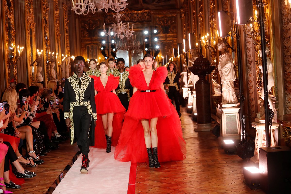 ROME (Reuters) - High-end fashion met budget high-street retail at a glittering catwalk show in Rome on Thursday evening, where Italian designer Giambattista Valli presented his new collection for Sweden's H&M in Rome's sumptuous 17th-century Palazzo Doria Pamphilj.
