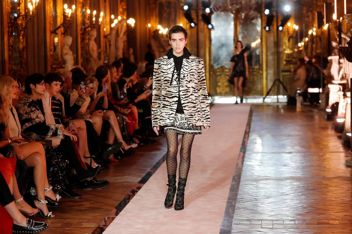A model walks on catwalk wearing a black dress during fashion show to present creations of designer Giambattista Valli and fast-fashion giant H&M in Rome, Italy October 24, 2019. Picture taken October 24, 2019. REUTERS/Remo CasilliModels on the catwalk at the end of the show to present creations of designer Giambattista Valli and fast-fashion giant H&M in Rome, Italy October 24, 2019. Picture taken October 24, 2019. REUTERS/Remo CasilliA model walks on catwalk wearing a tiger-effect suite during fashion show to present creations of designer Giambattista Valli and fast-fashion giant H&M in Rome, Italy October 24, 2019. Picture taken October 24, 2019. REUTERS/Remo CasilliA model walks on catwalk wearing a white fake fur coat during fashion show to present creations of designer Giambattista Valli and fast-fashion giant H&M in Rome, Italy October 24, 2019. Picture taken October 24, 2019. REUTERS/Remo CasilliA model walks down the catwalk wearing a hooded black jumper with gold decorations and a white logo at fashion show to present creations of designer Giambattista Valli and fast-fashion giant H&M in Rome, Italy October 24, 2019. Picture taken October 24, 2019. REUTERS/Remo CasilliItalian influencer Chiara Ferragni poses for pictures, wearing a short black dress, ahead of the fashion show in Rome to present creations of designer Giambattista Valli and fast-fashion giant H&M in Rome, Italy October 24, 2019. Picture taken October 24, 2019. REUTERS/Remo CasilliA model walks on catwalk wearing a black tulle dress during fashion show to present creations of designer Giambattista Valli and fast-fashion giant H&M in Rome, Italy October 24, 2019. Picture taken October 24, 2019. REUTERS/Remo CasilliA model walks on catwalk wearing a red tulle dress during fashion show to present creations of designer Giambattista Valli and fast-fashion giant H&M in Rome, Italy October 24, 2019. Picture taken October 24, 2019. REUTERS/Remo Casilli