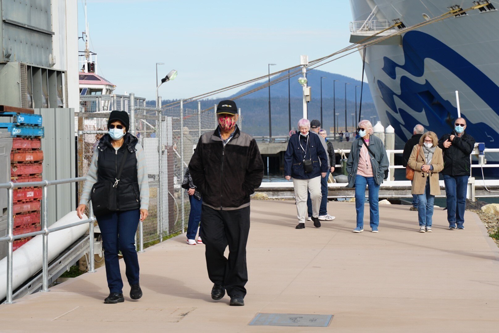 A Carnival Cruises spokesman said it had asked its passengers disembarking in Eden today to wear a mask where appropriate, and be mindful of the local community.