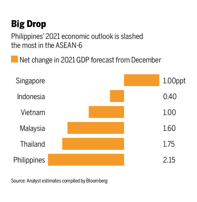 Indonesia, Thailand and the Philippines have already cut their gross domestic product forecasts for this year, and Malaysia says it will follow suit soon. Vietnam, one of the few economies in the world that continued growing strongly last year, undershot forecasts for the first half of 2021 and is now struggling with an outbreak in areas that house major industrial parks.