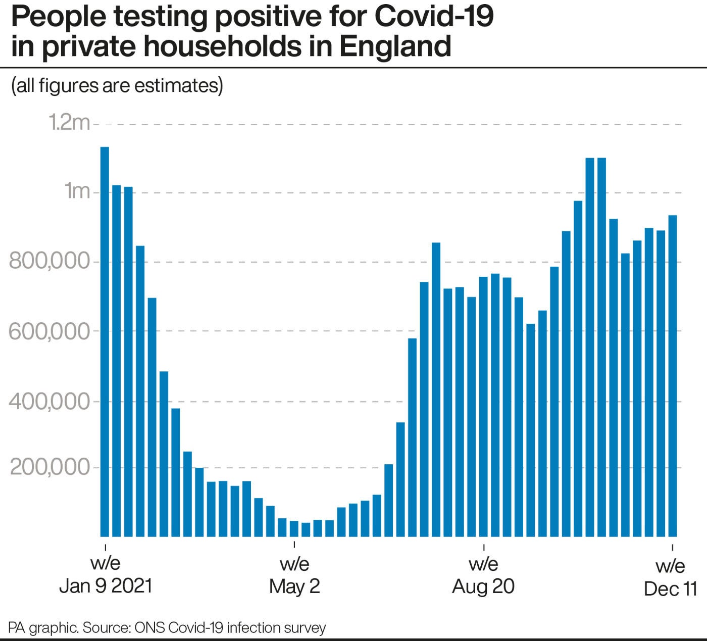 The ONS figures run only up to last weekend, meaning the rapid spread of the Omicron variant in recent days is not reflected in the estimates.