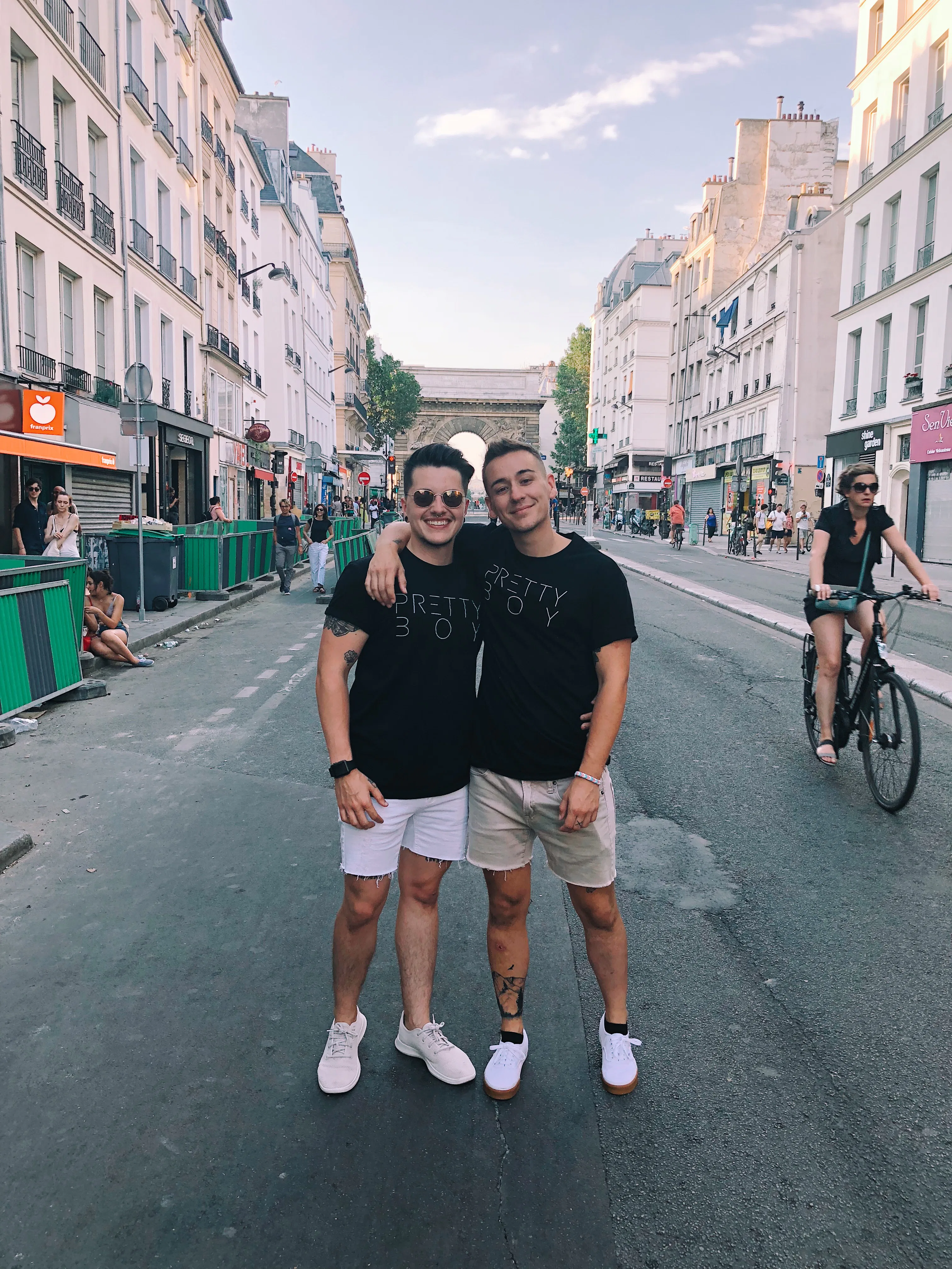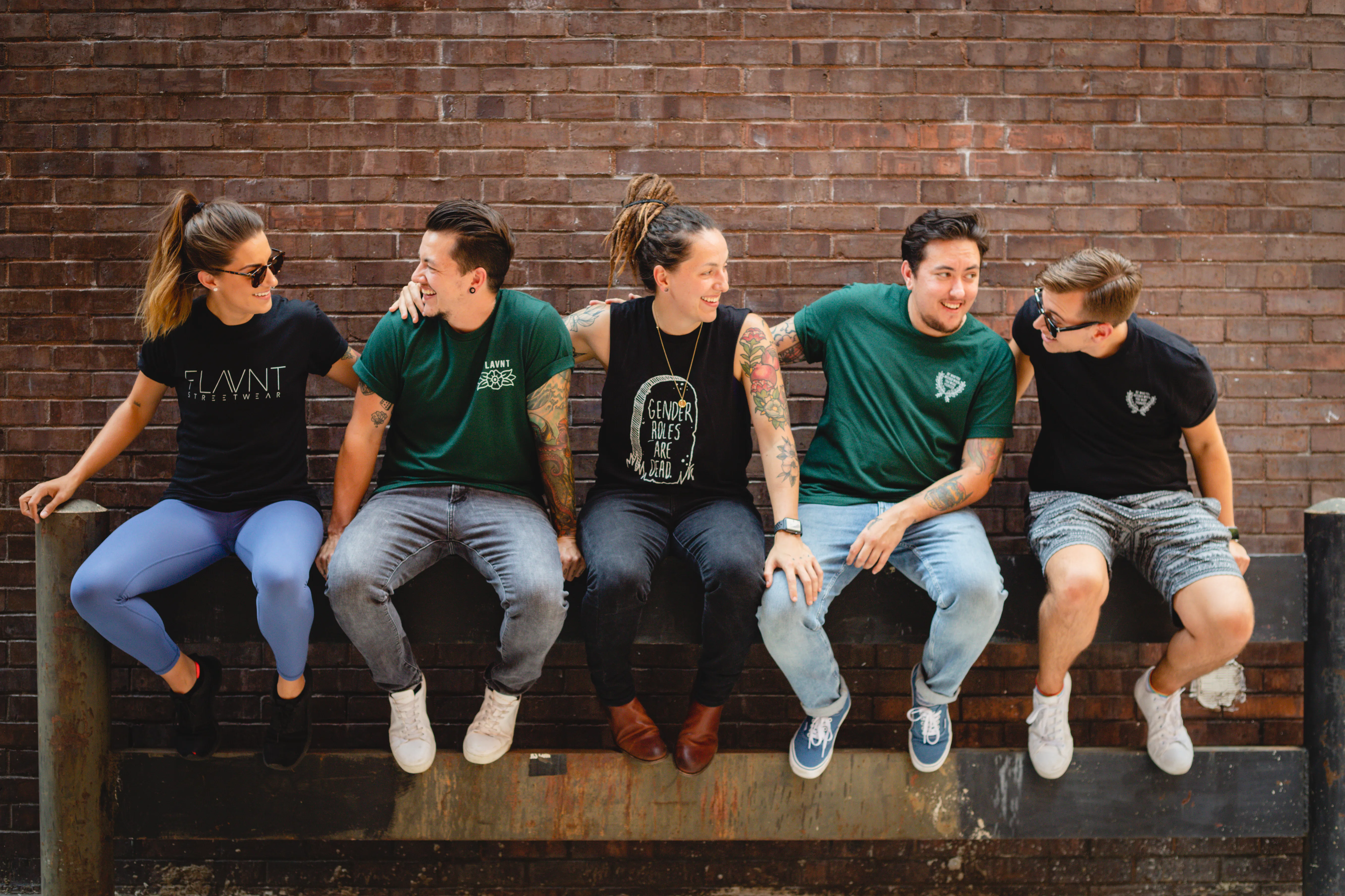 In 2014, Rhodes and his twin sister Courtney decided to sell the “Pretty Boy” t-shirt, along with other designs including tie-dye sweats and tees with phrases like “Gender Roles Are Dead,” and “Wish You Were Queer,” under the name FLAVNT Streetwear. Each design is carefully crafted with a sporty nod — the twins each studied graphic design in college, and their distinctive eye shows through.
