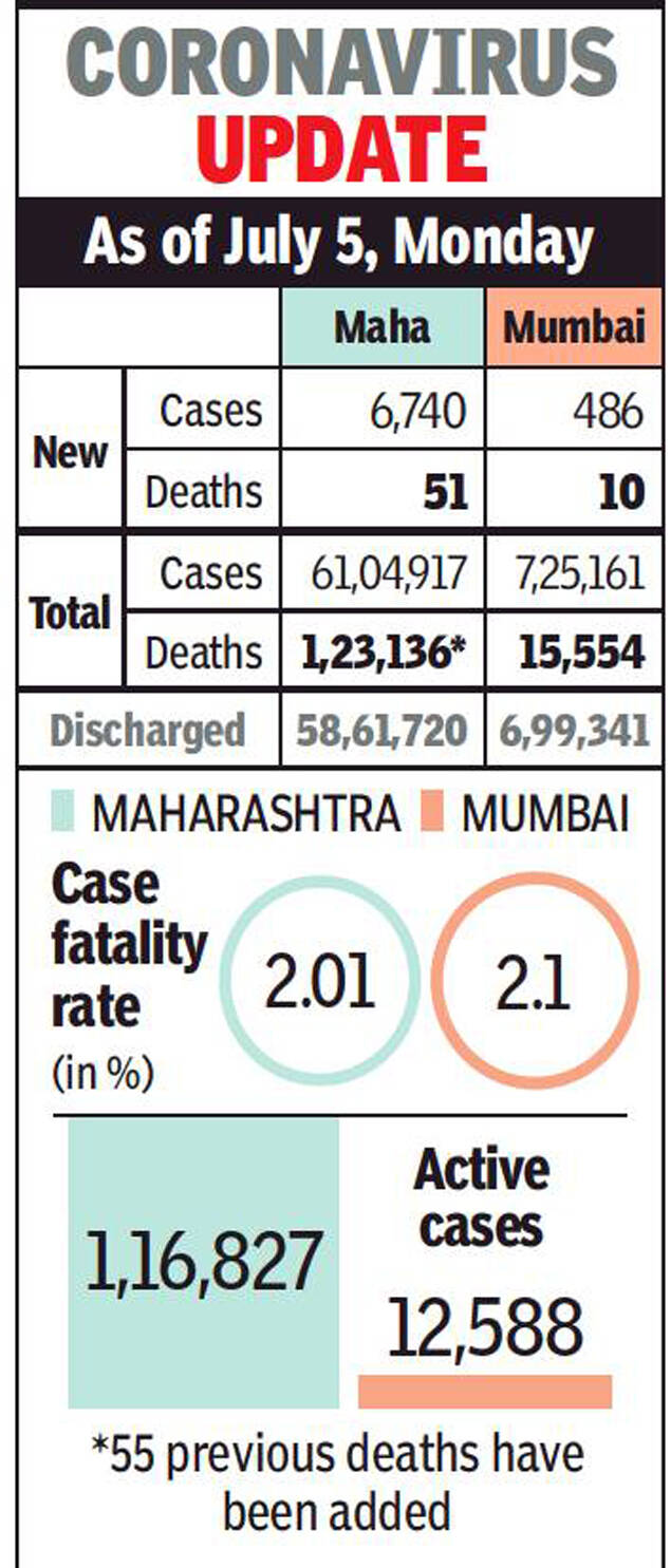 MUMBAI: For the first time since the peak of the second Covid wave in April, Maharashtra registered 51 deaths on Monday, the lowest single-day toll since March 15 (48). In the city too, daily Covid deaths, which had emerged as a cause for concern last week with 118 deaths recorded in five days, registered a drop to 10.