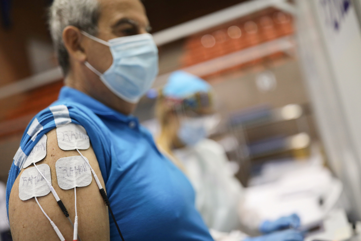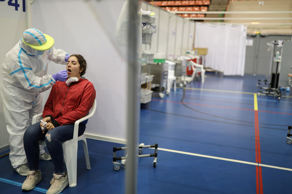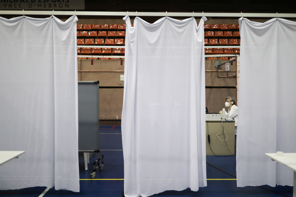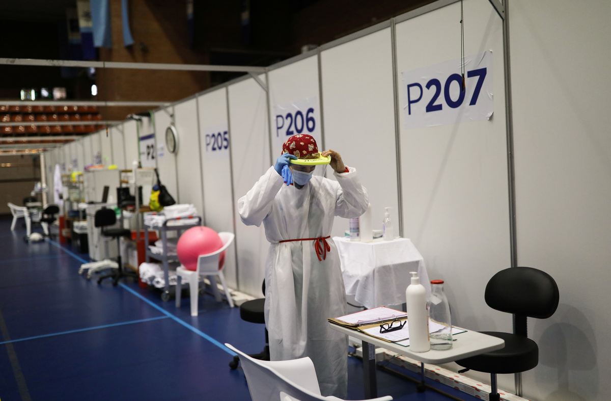 Ramon Fite, 67, a recovered COVID-19 patient, undergoes rehabilitation with a physical therapist at the Hospital Vall d'Hebron facility, a hastily converted sports centre, in Barcelona, Spain, June 10, 2020. REUTERS/Nacho DoceA woman undergoes a test for the coronavirus disease (COVID-19) at the Hospital Vall d'Hebron facility, a hastily converted sports centre, in Barcelona, Spain, June 11, 2020. REUTERS/Nacho DoceA woman undergoes a test for the coronavirus disease (COVID-19) at the Hospital Vall d'Hebron facility, a hastily converted sports centre, in Barcelona, Spain, June 11, 2020. REUTERS/Nacho DoceA physical therapist adjusts her protective face shield before a physiotherapy session at the Hospital Vall d'Hebron facility, a hastily converted sports centre, in Barcelona, Spain, June 10, 2020. REUTERS/Nacho DoceHealth workers are pictured at the Hospital Vall d'Hebron facility, a hastily converted sports centre, in Barcelona, Spain, June 10, 2020. REUTERS/Nacho DoceA physical therapist works before a physiotherapy session at the Hospital Vall d'Hebron facility, a hastily converted sports centre, in Barcelona, Spain, June 10, 2020. REUTERS/Nacho Doce