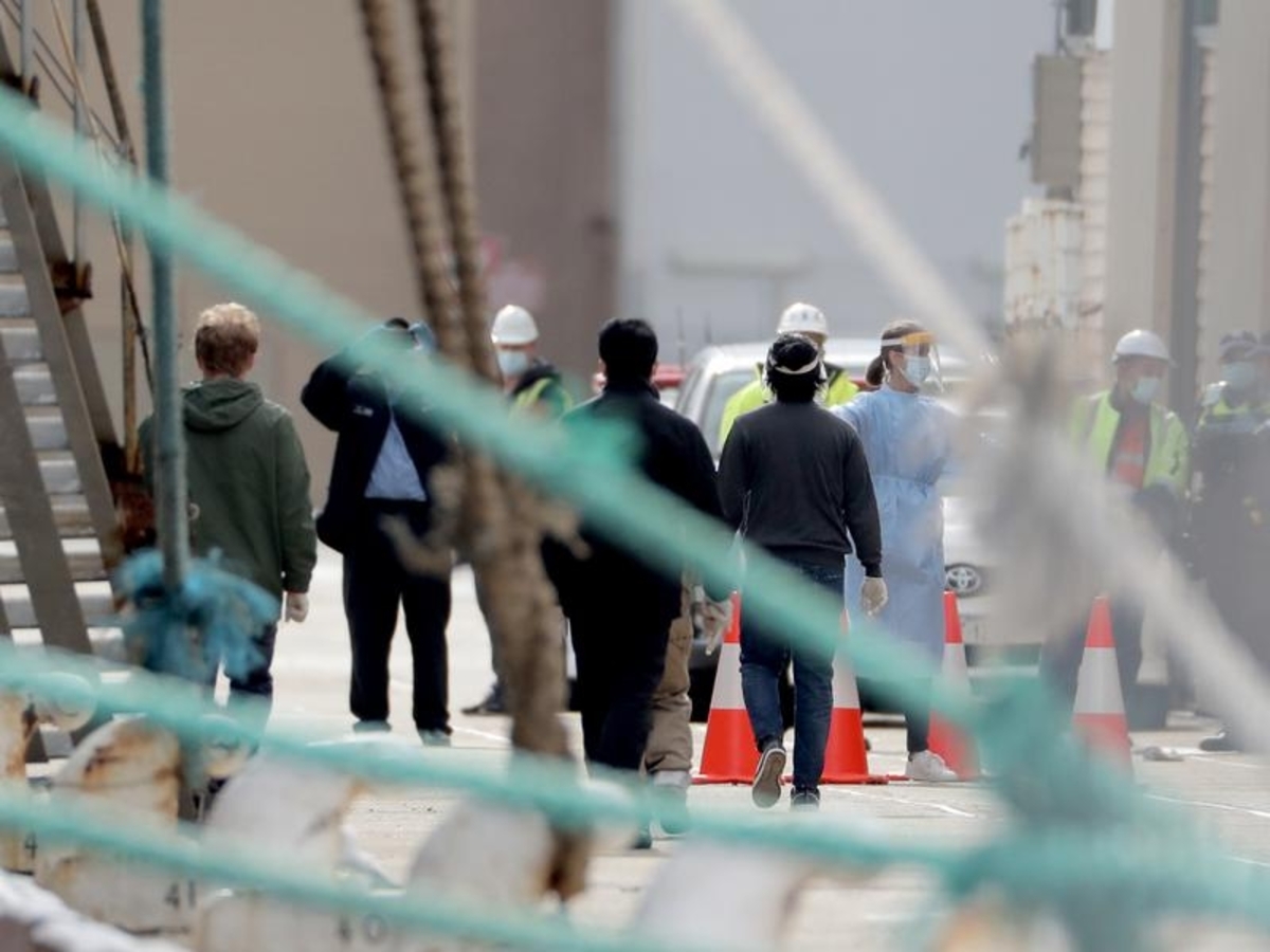 Port company Qube said workers had been cautioned about removing their masks too early when leaving ships.