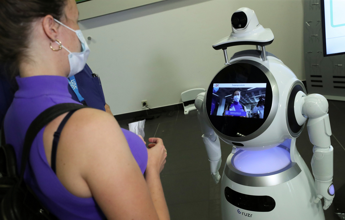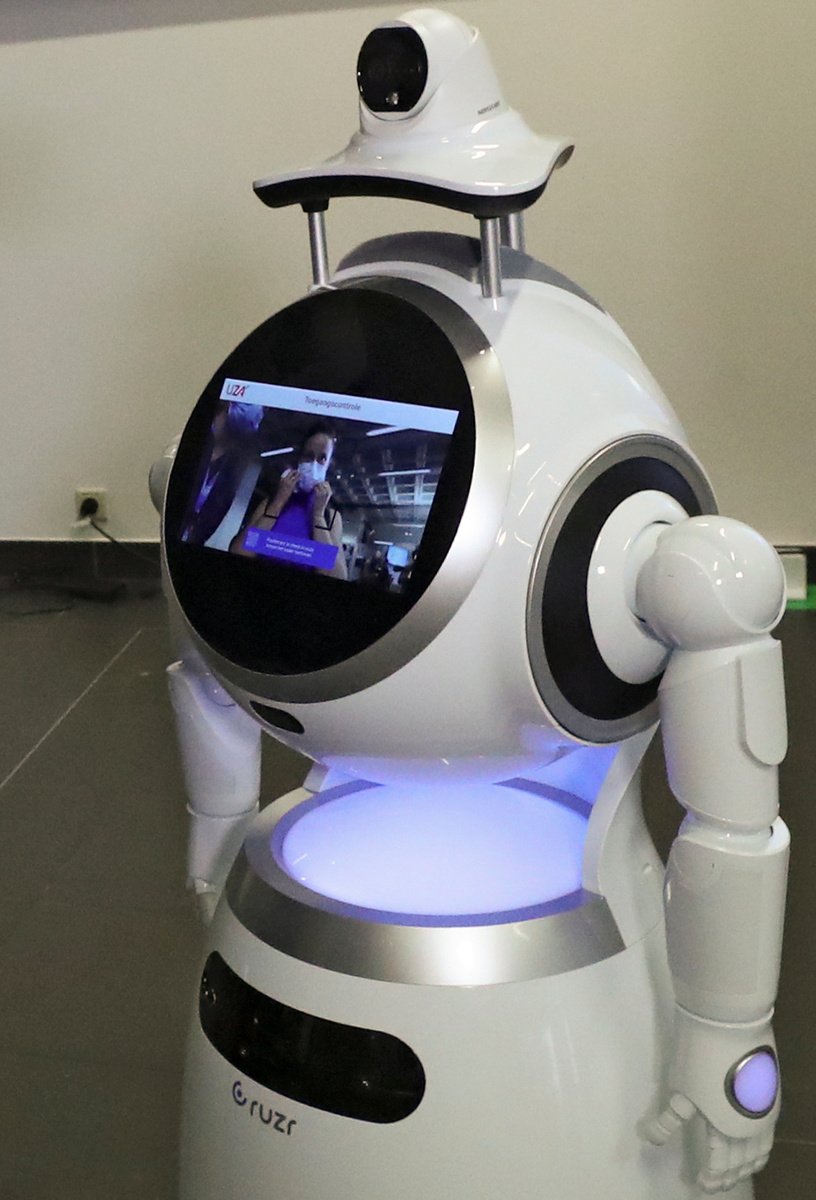 People arriving at the University Hospital Antwerp from Tuesday will answer questions online or at an interactive kiosk. The robot will scan a QR code, review their answers, check their temperature and determine if they are wearing a mask correctly.