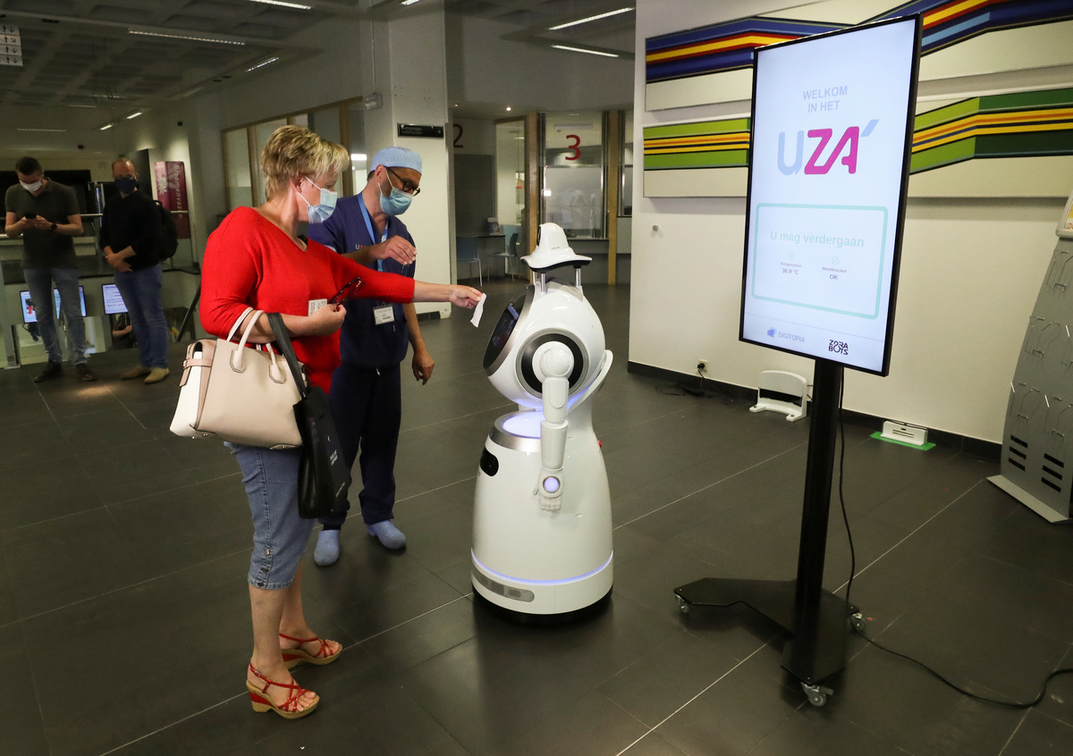 Robots that speak more than 53 languages, detect fever and determine if people are wearing face masks properly have been rolled out in Belgium as a first line of control in hospitals and shops.