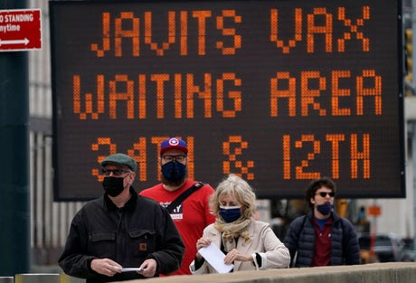 As of Monday, all adults over the age of 16 are now eligible for the coronavirus shot, and in some states such as New York, older people who have yet to be vaccinated no longer need an appointment and can receive a shot on a walk-in basis.
