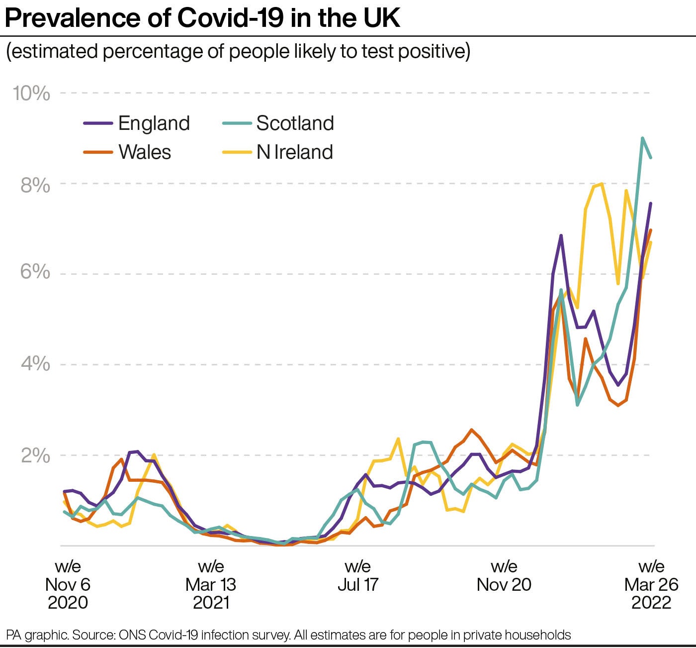 “The rapid rise continues to be fuelled by the growth of the Omicron BA.2 variant across the UK,” she added.