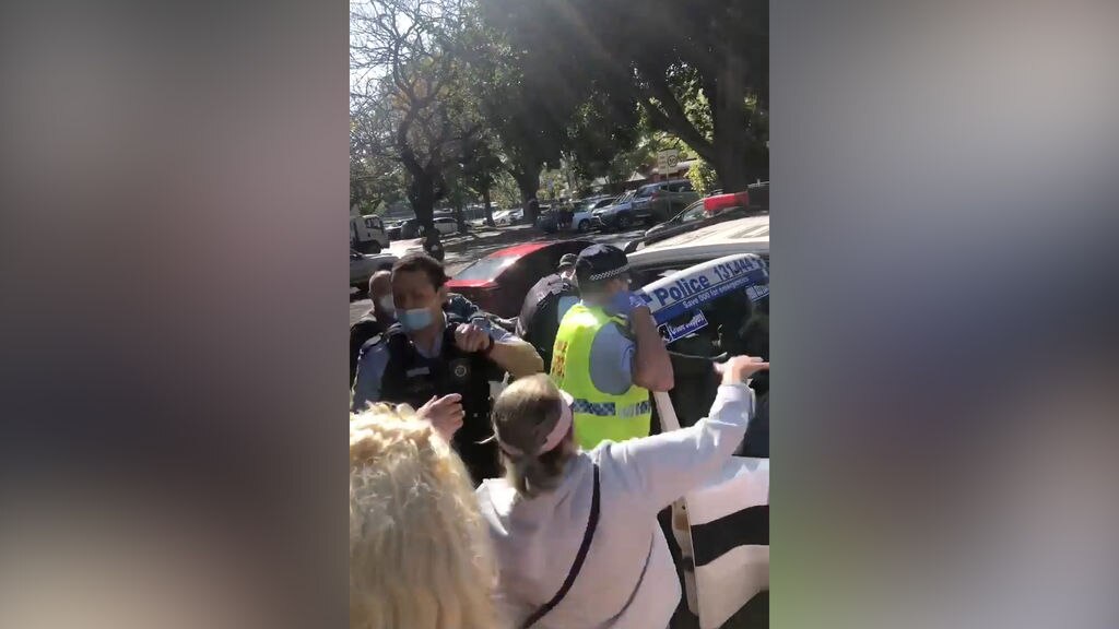 In the Riverina, about 45 unmasked people attended the protest in Wagga Wagga.