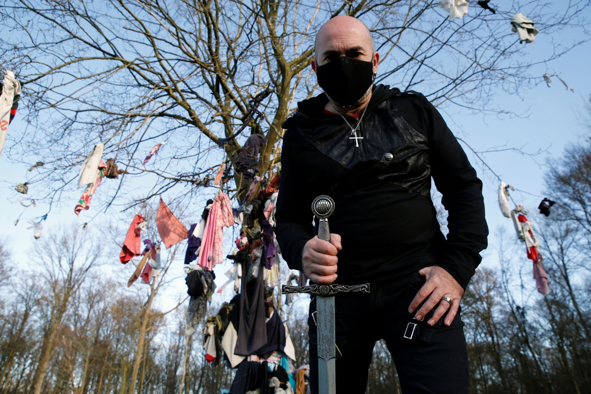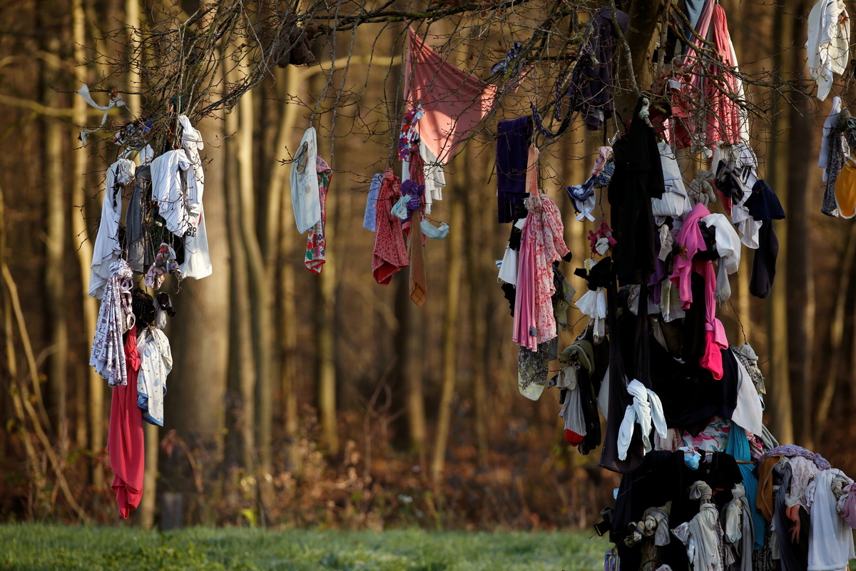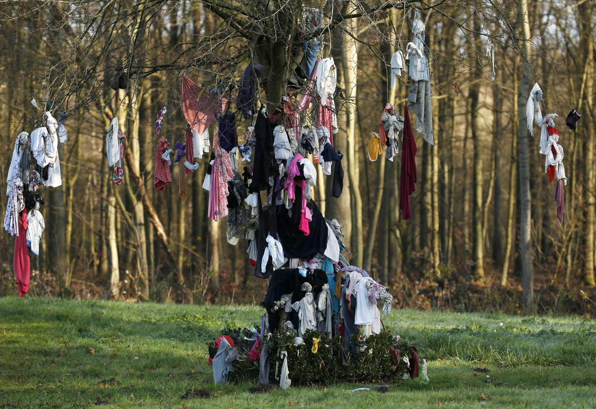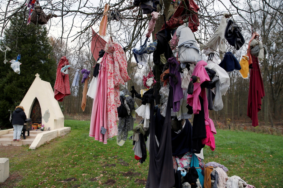 Tied to the branches of the healing tree in Hasnon, southeast of Lille, surgical masks can be clearly seen among items of clothing that range from socks to underwear - often left, Bosio said, by people suffering from fertility problems.