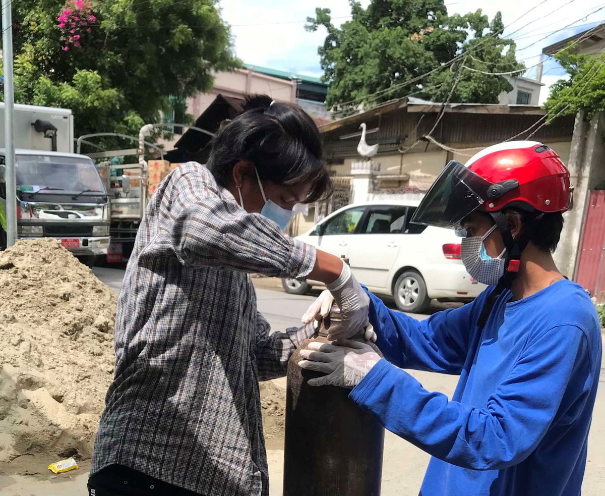 He and fellow volunteers line the tanks up outside charities for filling and returning, trying to save lives in a country whose health system has largely collapsed since a Feb. 1 coup and which now faces its worst surge of COVID-19 infections.
