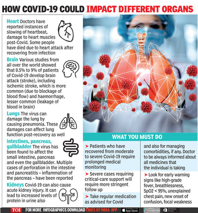 On Monday, Aakash Healthcare said nearly 50 patients had been admitted to their hospital recently with gastrointestinal problems, including colitis, colon ulcers, liver abscess (pus in the liver) and pancreatitis post-Covid. “These post-Covid complications should receive due attention because they can emerge as additional complications in people with respiratory failures and pneumonia,” said Dr Sharad Malhotra, head, gastroenterology department. Covid’s effects on other organs, like the brain, heart and kidneys, are also well documented.