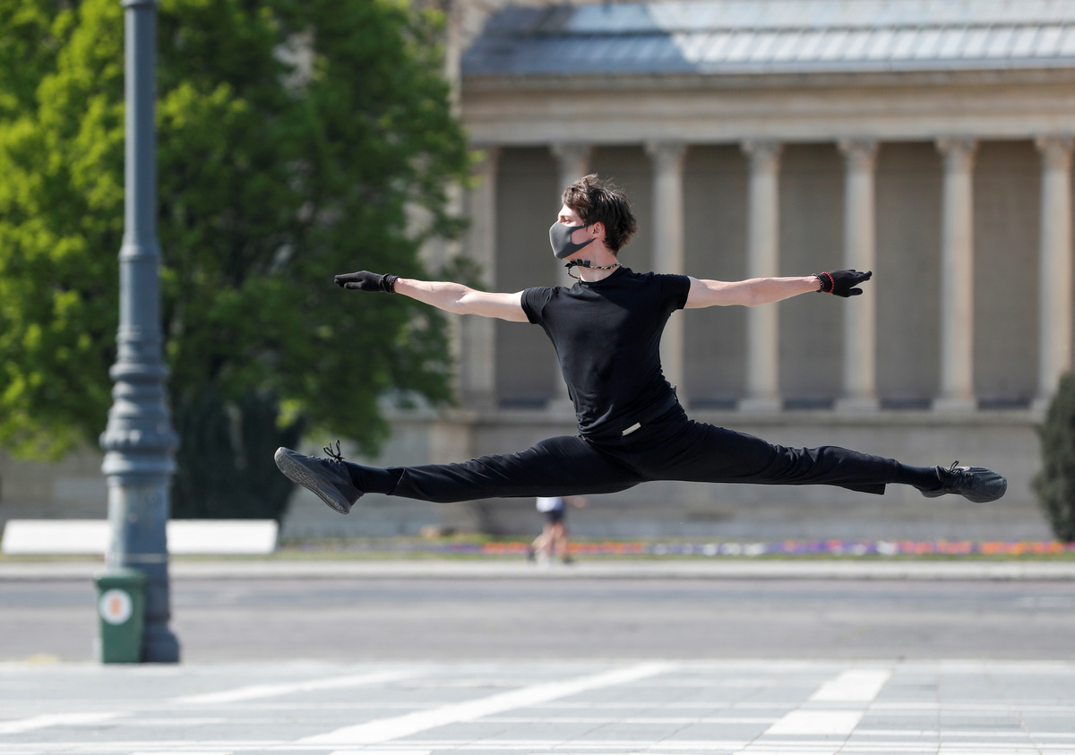 Hungarian ballet dancer Zsolt Kovacs performs a choreographic piece he has designed for the 'coronavirus melody', a musical composition created by MIT scientists from a model of the protein structure of SARS-CoV-2, during the coronavirus disease (COVID-19) outbreak in Budapest, Hungary, April 28, 2020. Picture taken April 28, 2020. REUTERS/Bernadett SzaboHungarian ballet dancer Zsolt Kovacs performs a choreographic piece he has designed for the 'coronavirus melody', a musical composition created by MIT scientists from a model of the protein structure of SARS-CoV-2, during the coronavirus disease (COVID-19) outbreak in Budapest, Hungary, April 28, 2020. Picture taken April 28, 2020. REUTERS/Bernadett SzaboHungarian ballet dancer Zsolt Kovacs performs a choreographic piece he has designed for the 'coronavirus melody', a musical composition created by MIT scientists from a model of the protein structure of SARS-CoV-2, during the coronavirus disease (COVID-19) outbreak in Budapest, Hungary, April 28, 2020. Picture taken April 28, 2020. REUTERS/Bernadett Szabo