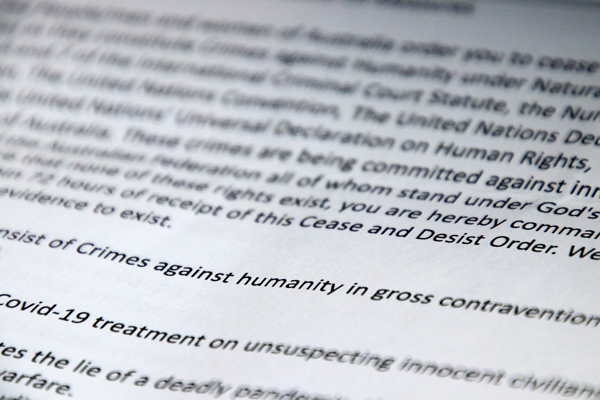 The letters appear to be part of a national campaign led by anti-vaxxers aimed at not just healthcare professionals but also schools, the police, the ADF, large organisations and the media.
