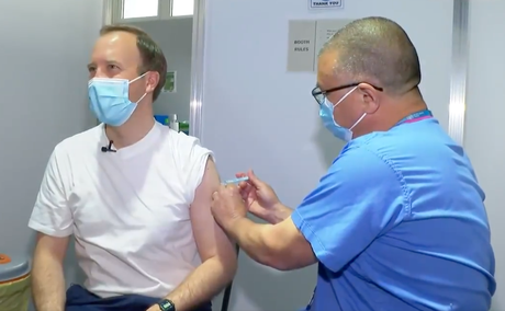Matt Hancock has received his first dose of a Covid-19 vaccine, with deputy chief medical officer Jonathan Van-Tam administering the jab.