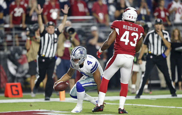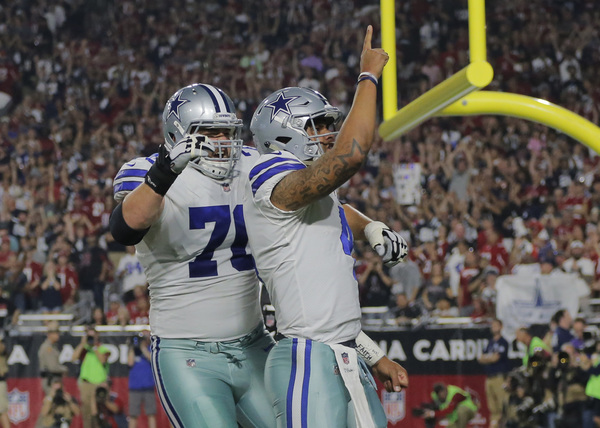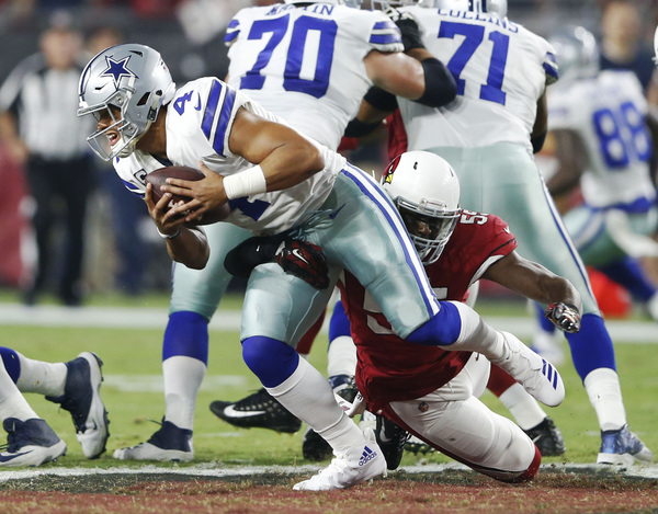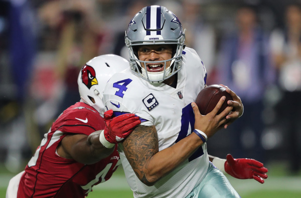 There is no questioning Prescott's grit and competitiveness. He completed 13 of 18 passes for 183 yards with two touchdowns passing and 16 rushing yards, including a 10-yard touchdown run.