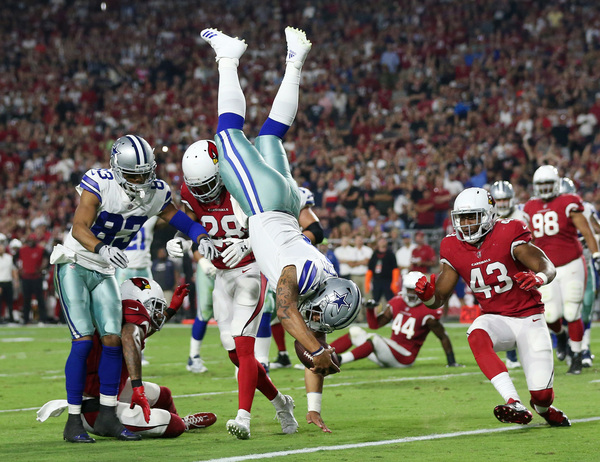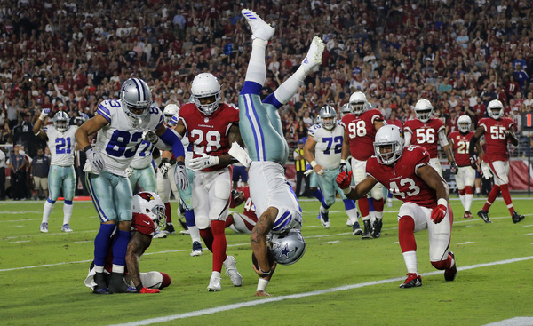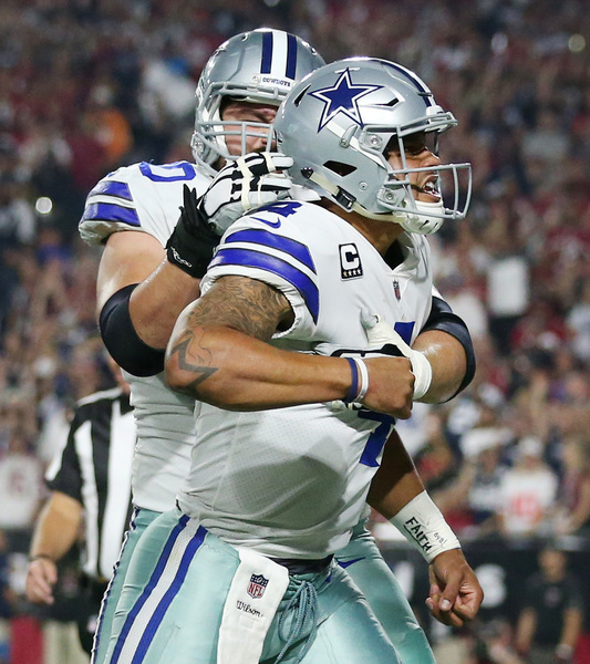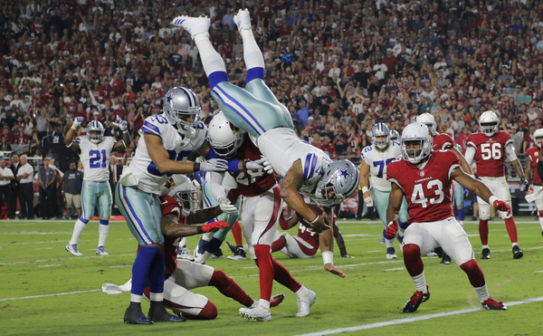 But on this Monday might, the Cowboys responded with a gritty and unified effort that included Prescott somersaulting into the end zone, Bryant bulling his way into end zone for a catch-and-run touchdown and receiver Brice Butler making a contested catch for a score following a Prescott scramble.