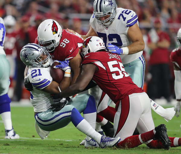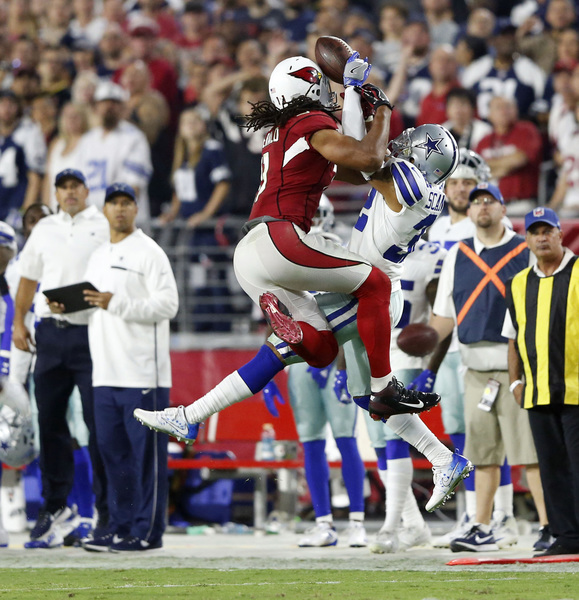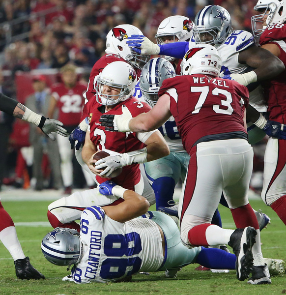 Most impressive was the goal-line stand in the final minute the game. The Cardinals had a first and goal at the 1 following passing interference penalty and then quarterback Carson Palmer threw four consecutive incompletions, with safety Byron Jones batting down the final pass.